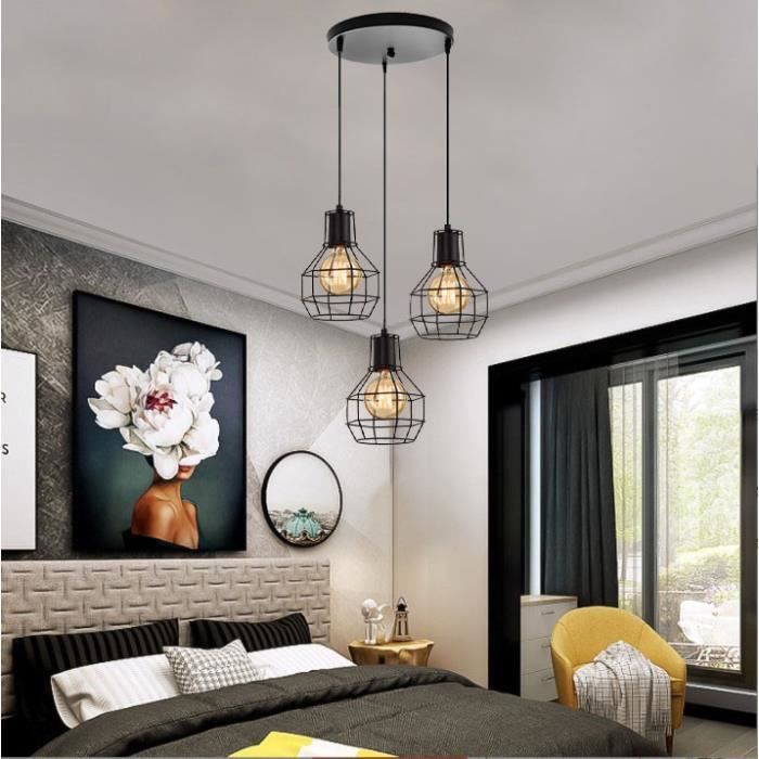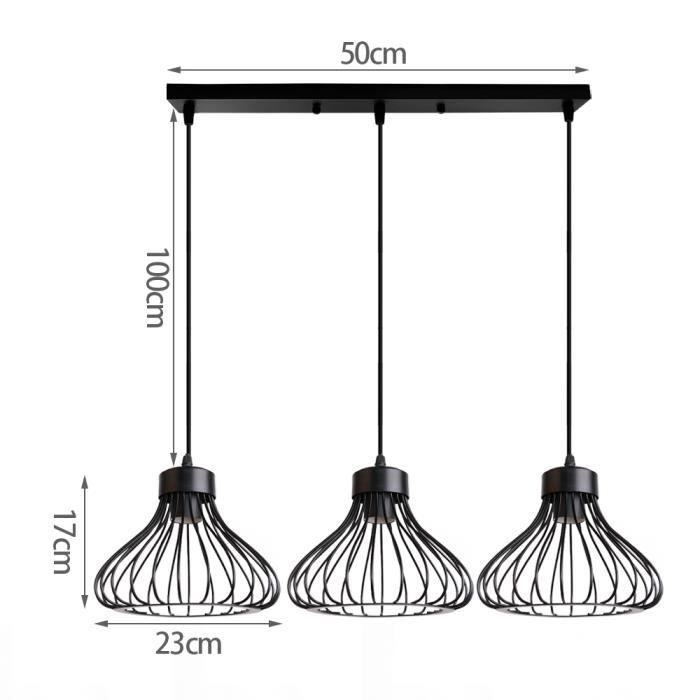 Design Élégant: Suspension en forme de diamant, avec une belle finition. Taille recommandée de la pièce: 10-15㎡. iDEGU Lampadario a sospensione Vintage, 3 Luci Lampade a Sospensione E27 in Meta EN STOCK : Idegu 3 lampes pas cher. Grand choix, promos permanentes et livraison rapide partout en France. Paiement sécurisé Parfait pour la cuisine / salle à manger / chambre à coucher / salon / café / bureau / hôtel / restaurant / bar / club éclairage déco. IDEGU 3 Lampes Suspension Luminaire Industrielle Lustre Plafonnier Vintage Luminaire Abat-jour Cage Diamant En Métal Et Corde De Chanvre Lampe E27 Pour Salle à Manger Salon, 50cm, Noir Un magnifique lustre pour répondre à vos besoins d'éclairage de base. Une suspension très attrayante pour les enfants. En raison de son aspect élégant, il peut devenir une très belle décoration. IDEGU Vintage Plafonnier Industriel en Métal Cage Suspensions Lustres...