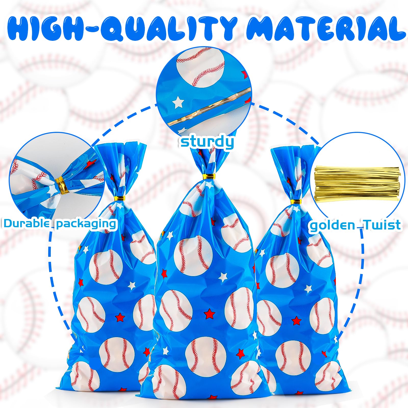 Sacs cadeaux sur le thème du baseball Matériau - Ces sacs cadeaux transparents sont fabriqués en plastique de haute qualité. Ils sont parfaits pour les muffins aux épices à la citrouille et les biscuits au gingembre que j’ai préparés pour la vente de pâtisseries de l’école de mon petit-fils Caractéristiques des sacs en plastique sur le thème du baseball - Nos sacs en cellophane bleus sont imprimés des deux côtés avec un motif de baseball rouge et blanc aux couleurs vives. Sac Cadeau Rose Zi Lan 50 Sachets En Cellophane Pour Friandises Avec Imprimé Ballon Doré Les adultes peuvent facilement tenir ces sacs dans leurs mains. Sacs à friandises de fête en cellophane en forme de carotte, orange... Zi Lan Lot de 50 sacs à friandises en cellophane avec 50 Ils peuvent contenir des bonbons, des biscuits, du pop-corn et d'autres snacks, et sont fermés par un lien torsadé doré. Vous pouvez les utiliser pendant longtemps sans craindre qu'ils ne se cassent soudainement, et ils donnent également à vos cadeaux un aspect et un toucher particuliers.