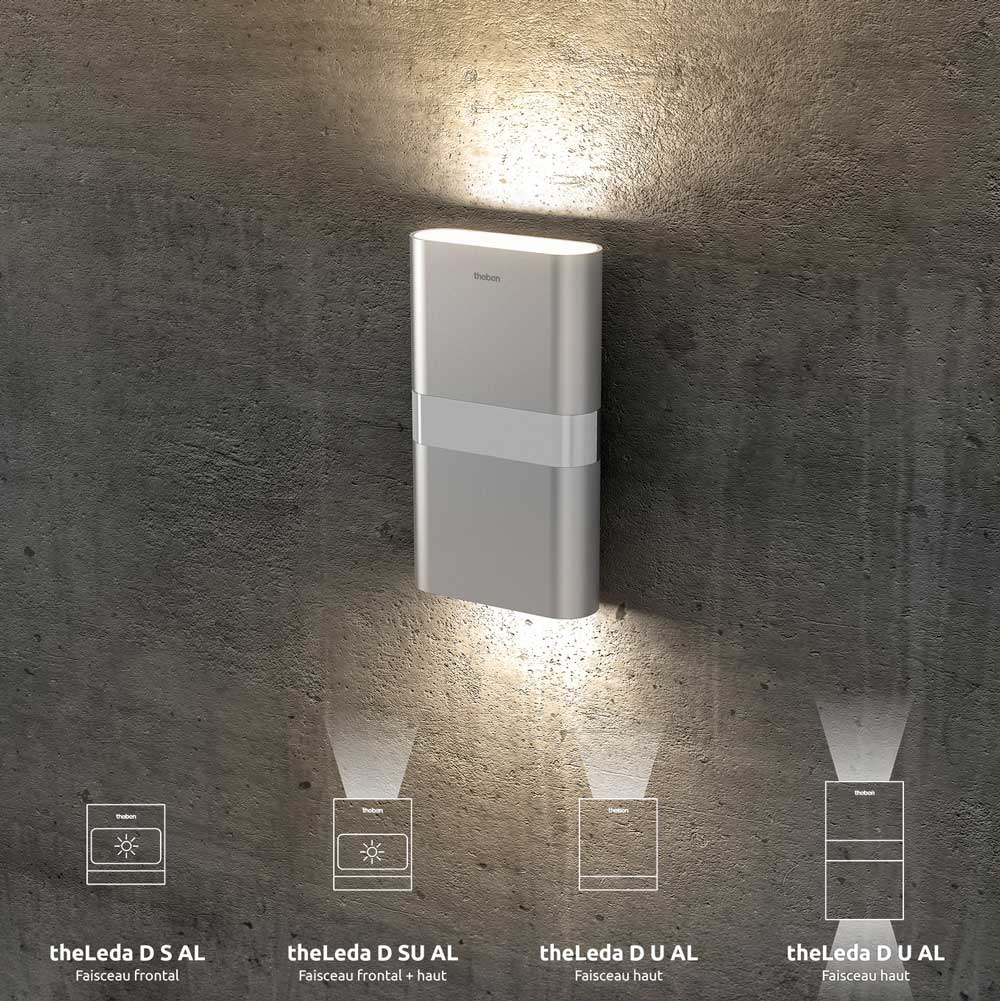 Caractéristiques principales en un coup d'œil : Détecteur de mouvement Les lampes LED theLeda D avec détecteur de mouvement intégré assurent un éclairage sûr et d'ambiance partout où une belle lumière est importante en quelques secondes. Lampe LED avec spot LED dirigé vers le haut et vers le bas et détecteur de mouvement dans un boîtier en aluminium. Avec son boîtier en aluminium anodisé mat et sa lumière blanche chaude agréable, elle fait bonne figure partout. Theben présente les lampes à LED interconnectables theLeda D pour l'extérieur avec détecteur de mouvement intégré et boîtier en aluminium Theben theLeda D – Variantes (disponibles avec ou sans détecteur de mouvement)., Bornes lumineuses. Description du produit Lampe LED de la famille Theben theLeda D. Différentes Tailles : Spot LED avec spot LED orienté vers l'avant et boîtier en aluminium. Vous reconnaissez les modèles sans détecteur de mouvement sur le « L » dans la désignation du produit. Theben Applique Led TheLeda D SU AL - Applique LED SU 14W + Détecteur 180 Luminaire Extérieur Led Applique Avec Détection Lampe LED + spot vers le haut. La famille TheLeda D est riche en facettes. Pour l'éclairage indirect ou Éclairage de façade et d'accentuation. Sans détecteur de mouvement - L Même sans détecteur de mouvement, notre theLeda D laisse une impression parfaite. Elle permet d'émettre une lumière blanche chaude de 3000 K à chaque détection de passage corporel humain. Ce dispositif est doté de 2 lampes LED d'une puissance... Ceux-ci sont disponibles en option. Le projecteur extérieur possède un détecteur de mouvement avec un angle de détection de 180° à 10 m de portée et dispose d'une puissance lumineuse de 14 W (760 lm). Certains modèles TheLeda D sont adaptés à l'éclairage d'accentuation sur les façades de la maison ou à l'éclairage discret du numéro de maison - qui est obligatoire dans certains Länder. Theben theLeda D S AL Außenwandleuchte PIR-Sensor Éclairage indirect sur la façade de la maison, éclairage d'ambiance pour le jardin, la porte d'entrée ou la terrasse - La lampe LED TheLeda D de Theben vous permet les deux. Design parfait pour la façade de maison, le jardin, la porte de maison et la terrasse. Également avec prise pratique à l'arrière. Apporte une touche d'accent, crée la sécurité et l'expérience de la qualité. Avec une durée de vie de 50 000 heures, le Theben 1020902 theLeda D SU AL est extrêmement durable.