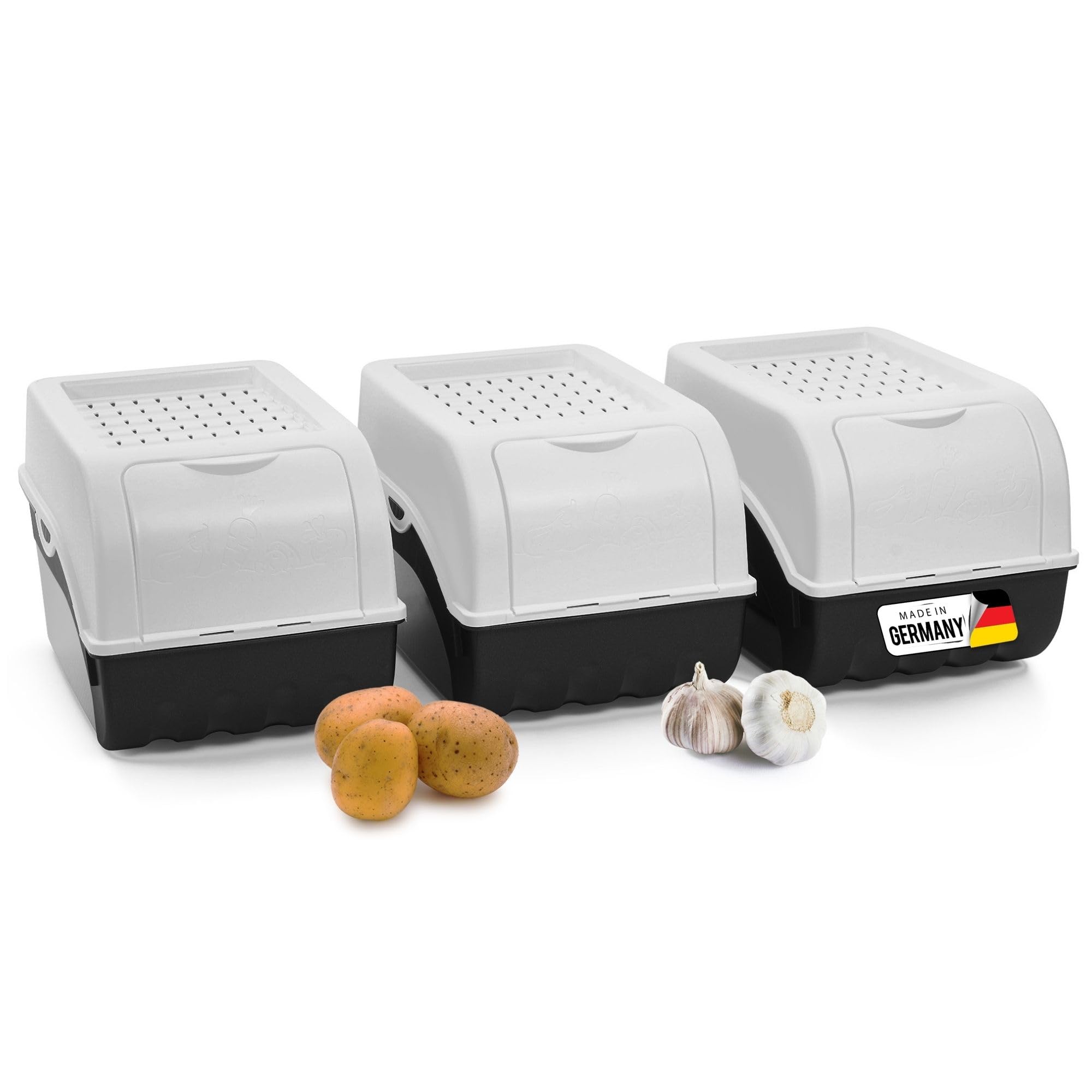 Le set de 4 paniers de rangement élégants avec couvercle en imitation rotin de Novaliv offre une solution à la fois stylée et pratique pour le rangement de divers objets. Ces paniers ne sont pas seulement fonctionnels, mais aussi esthétiquement plaisants grâce à leur design en imitation rotin. Fabriqués en polypropylène alimentaire, ils sont idéaux pour le stockage des aliments ainsi... Grâce à la grande ouverture refermable dans le couvercle, vous pouvez facilement accéder au contenu. Contenu de la livraison : une boîte à oignons de Novaliv. La capacité des boîtes de rangement est d'environ 3,5 litres, 5 litres et 9 litres. La boîte à légumes est adaptée pour les pommes de terre, les oignons, l'ail, les carottes, les courgettes, les poivrons, les pommes, les poires ou d'autres... La boîte est adaptée pour les pommes de terre, oignons, ail, carottes, courgettes, poivrons, pommes, poires ou autres fruits et légumes., Fabriqué en Allemagne. Avec cette boîte à légumes, apportez un bel accessoire dans votre cuisine. Créez de l'ordre et un espace de rangement supplémentaire dans votre cuisine. Le matériau est opaque pour que la lumière ne pénètre pas dans le contenu. Les boîtes peuvent être empilées pour économiser de l'espace sur l'étagère à légumes La grande boîte XL de 9 litres est idéale comme boîte à pommes de terre. Dimensions : boîte de rangement d'environ 29 x 20 x 14 cm - Volume de la boîte à carottes : environ 3,5 litres. Les boîtes en plastique pour le stockage des pommes de terre, oignons et autres légumes sont fabriquées en Allemagne. Boite Conservation Pomme De Terre Novaliv Boîte De Rangement Pour Pommes De Terre | Violet Pot Oignons Ail Echalotte Dimensions : 29 x 20 x 19 cm. Trois tailles différentes. La boîte de conservation est universelle. Le récipient à légumes et fruits est opaque Rangement pour pommes de terre, lot de 3 sacs avec poignée, coton La boîte à fruits a des trous dans le couvercle, ce qui permet à l'air de circuler de manière optimale et donc de maintenir l'humidité de l'air uniforme. Dimensions : 29 x 20 x 23 cm.