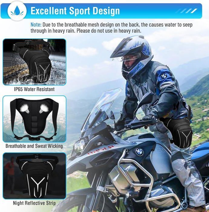 ✨ Découvrez la polyvalence ultime avec notre sac banane de jambe. Oubliez la sueur ou quelques gouttes de pluie, vos affaires seront protégées à tout moment. 1-48 sur plus de 50 000 résultats pour sacoche de jambe moto Résultats En apprendre plus sur ces résultats. Consultez la page de chaque produit pour connaître les autres options d'achat. Le prix et les autres détails peuvent varier en fonction de la taille et de la couleur du produit Nous sommes tellement confiants dans la qualité de notre sac banane que nous offrons une garantie de remboursement à 100 %. La poche principale, avec des dimensions de 24 cm x 16 cm et 9 cm de profondeur, extensible jusqu'à 13 cm, offre suffisamment d'espace pour vos affaires essentielles. Conçu pour s'adapter à toutes les occasions, que ce soit pour les sorties en moto, en montagne, au travail, lors de festivals, concerts, événements sportifs ou pour les livreurs de nourriture, ce sac banane latéral est votre compagnon idéal, les meilleurs accessoires de moto Conquérez le chemin avec notre sac banane pour moto conçu pour répondre à vos besoins lors de chaque voyage. Notre politique de garantie n'est disponible que pour les vendeurs autorisés. Découvrez la combinaison parfaite de fonctionnalité et de style avec notre sac banane pour moto. Sac Banane De Moto Pour Homme Et Femme - Pour Randonnée, Vélo, Équitation, Cyclisme, Plein Air... Votre satisfaction est notre priorité AHR Quality Jambe De Moto ( Porte-clés) Avec Poignées Techniques - Sac Banane Moto Pour Homme Et Femme Latéral Tactique Femme 3 Poches Et Double Fixation Couleur, Noir , Moto En outre, la sangle de jambe avec une plage de 40 cm à 60 cm offre une stabilité supplémentaire pendant la conduite. Avec un tour de hanches maximum de 125 cm et un minimum de 81 cm, avec une sangle de jambe réglable entre 40 cm et 60 cm, ce sac banane s'adapte à tous les motards, offrant confort et sécurité. Résistant à l'humidité et aux éclaboussures, ce sac banane est conçu pour les aventures intensives. Nous incluons une touche exclusive avec un porte-clés et un mousqueton cadeau, vous offrant des options supplémentaires pour organiser vos clés ou autres accessoires essentiels. Sac Banane Pour Homme Et Femme - Sac À Bandoulière Pour Moto - Pour Les Promenades En Plein Air