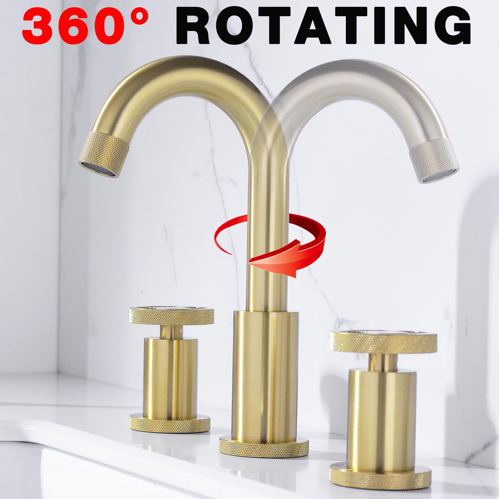 Bec rotatif à 360 degrés, pivotant flexible pour un meilleur accès à l'évier et économiser de l'espace, le bec atteint 11,7 cm, hauteur du bec 16 cm, hauteur totale 22,5 cm TRUSTMI Robinet De Salle De Bain Noir Mat En Laiton 2 Poignées 8 Pouces - Portée du bec : 117 mm. - Couleur/finition : or brossé. Couleur/finition : or rose brossé. Méthode d'installation : 3 trous, montage sur plateau. Diamètre du trou de montage : 29-35 mm. Nombre de poignées Robinet de salle de bain à 3 trous, installation large de 12,7 à 40,6 cm pour un design personnalisé. 2 lignes d'alimentation en eau cUPC 1 bonde de trop-plein (plastique). Robinet d'évier de salle de bain à 2 poignées de 20,3 cm, construction en laiton robuste pour garantir la durabilité et améliorer la longévité; Robinet de... - Hauteur du bec : 160 mm. - Méthode d'installation : 3 trous, montage en saillie. Trustmi de salle de bain Laiton rond à main avec ensemble de robinet de - Diamètre du trou de montage : 29-36 mm. Contenu : 1 robinet d'évier de salle de bain (valves fournies). - Hauteur totale : 225 mm. Poignées à disque symétriques, pas besoin d'aligner, installation plus facile. Robinet d'évier de salle de bain à 2 poignées de 20,3 cm, construction en laiton robuste pour garantir la durabilité et améliorer la longévité
