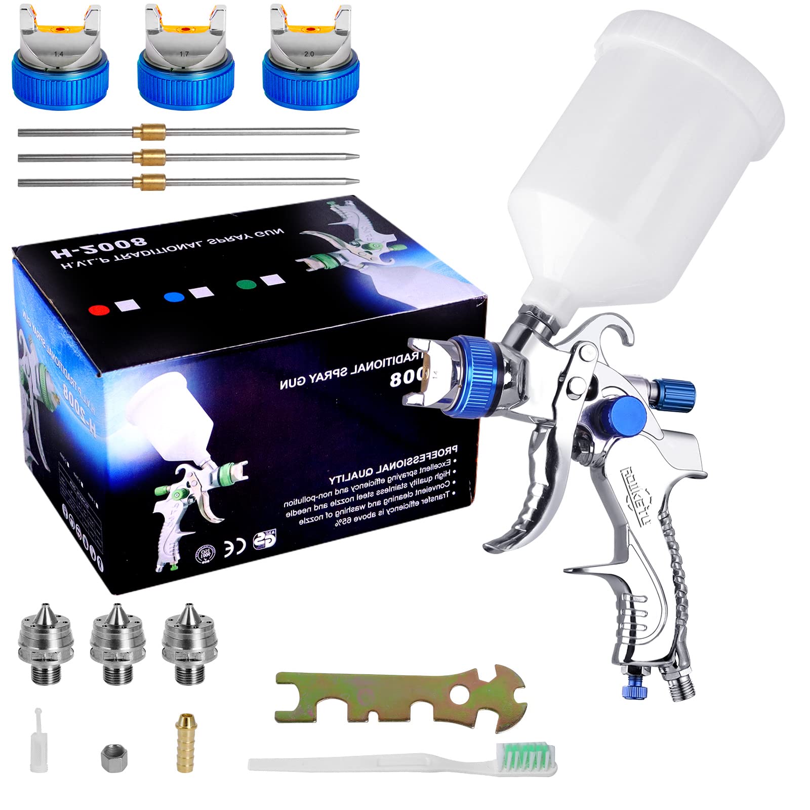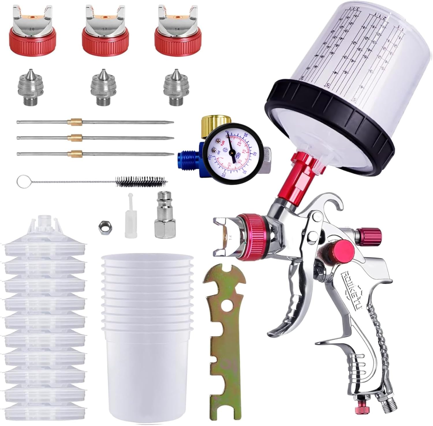 Pistolet pulvérisateur professionnel HVLP : ce pistolet pulvérisateur est conçu pour une pulvérisation de surface lisse et uniforme, ce qui le rend idéal pour les couches de base, les couches transparentes et autres revêtements à haute viscosité. Il peut pulvériser des couleurs de base, des apprêts de remplissage clairs, plus lourds et plus épais pour la peinture de la maison, la décoration de meubles, la réparation automobile, l'entretien, la rénovation intérieure et extérieure de la maison, et plus encore. ROM Pistolet À Peinture Automobile Hvlp Pulvérisateur De Peinture, G1/4 En utilisant le système de gobelets jetables, il réduit le gaspillage de matériaux de peinture et de solvants de nettoyage tout en éliminant le coût et la main-d'œuvre liés au nettoyage des gobelets de peinture automobile traditionnels Ce pistolet permet d'économiser 20 % de peinture et offre des performances optimales. Pistolet Peinture Carrosserie HVLP Pulvérisateur De Peinture Avec 10 Gobelets De Mélange Rapide Pistolets à Peinture Et Accessoires Il est adapté pour les applications domestiques et industrielles, y compris l'apprêt, le revêtement de finition et les détails pour l'industrie automobile, les équipements et la peinture de meubles. Cela réduit le temps et les coûts de nettoyage du pot après chaque pulvérisation et évite l'utilisation de solvants de nettoyage, ce qui vous permet d'économiser de l'argent. 【Économie】Notre kit de pistolet à peinture HVLP est livré avec 10 doublures de tasse et 10 couvercles, ce qui vous permet de stocker les restes de peinture dans le gobelet de mélange pour une utilisation ultérieure. SAL pistolet à peinture HVLP Ensemble de Pulvérisateur de Peinture...