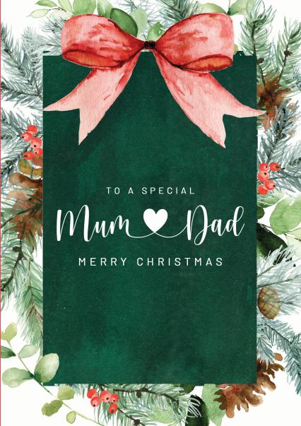 Christmas Card For Mum and Dad 23 x 15 Cm (9 x 6 inches) To Mum and Dad Hope You Have A Wonderful Time Merry Christmas Message à l'intérieur : voir image. To a Wonderful Mum at Christmas Card by Joanne Hawker | Cardly To A Special Mum & Dad At Christmas Time La carte de Noël Pour un cher Maman et Papa en pack de 6 offre une manière festive de transmettre des vœux affectueux pour Noël. Ces cartes de vœux présentent un design attrayant avec divers motifs de Noël tels que des boules de Noël, des flocons de neige et des cœurs Couleur : rouge et vert., Dimensions : 163 x 235 mm.