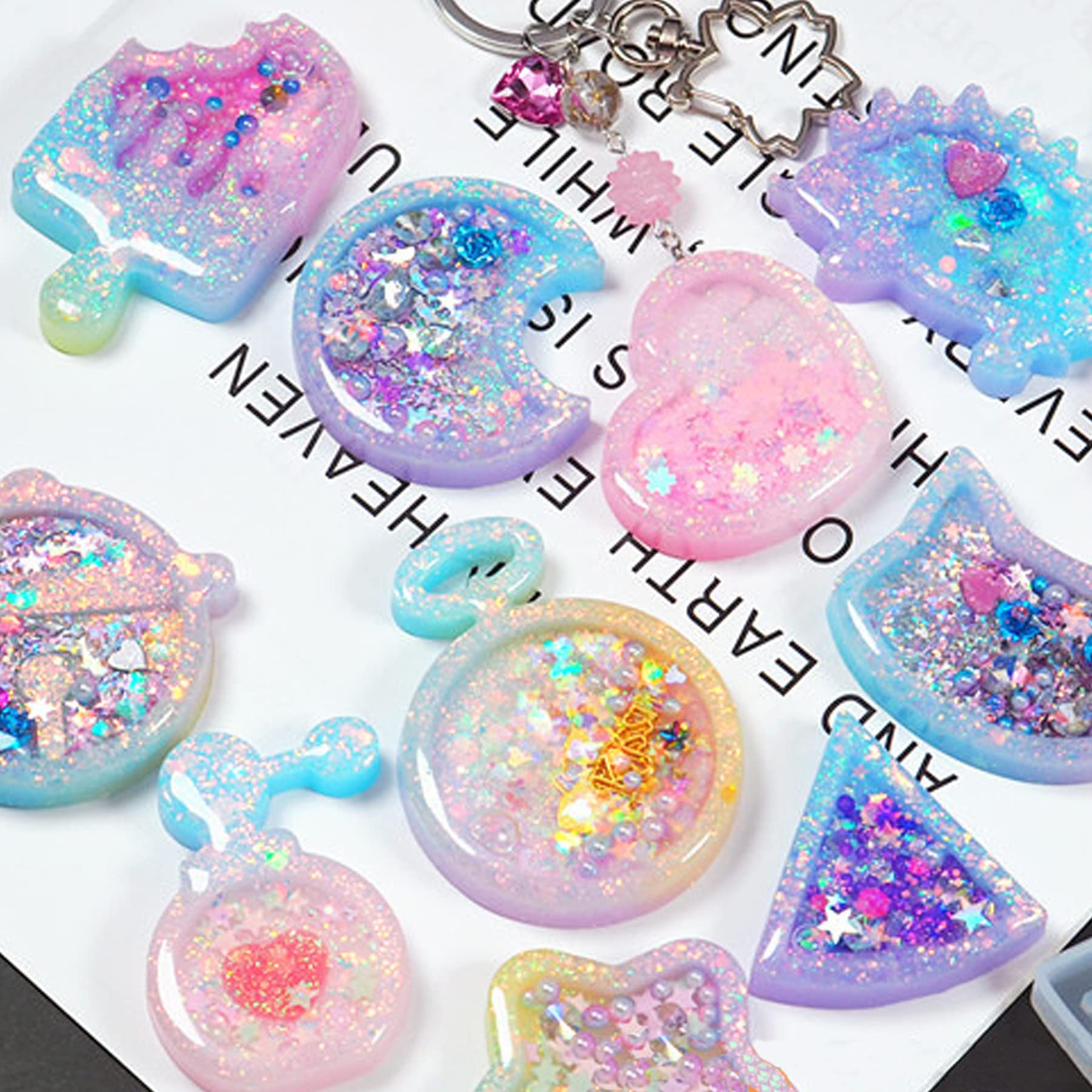 Matériau: les moules en résine de silicone quicksand sont fabriqués en silicone de grande qualité, le rendent léger et réutilisable, très flexible et facile à nettoyer, durable. Ensemble de 12 moules en silicone shaker, moules à porte-clés avec feuilles de PVC, paillettes pour pendentif, bijoux, porte-clés, décoration, bricolage. Moules Silicone Pour Résine Moulle Silicone Resine Epoxy 12 PCS Moules En Silicone Shaker Résine Moule Silicone Pour Pinces époxy Comment faire un charme de shaker: 1., Faites une base avec le moule: versez la résine dans le moule, démoulez-la lorsqu'elle est complètement durcie., 2., Recouvrez avec une feuille de PVC transparente: -Décrire la forme sur la feuille de PVC., -Découpez la forme. Spécification: Matériel: silicone Forme: forme de cœur, lune, étoile, tête d'ours, pastèque, flacon de parfum, chat, cloche, hérisson, montre de poche, fraise, popsicle Le forfait comprend: 12 x Moules en silicone shaker 10 x Feuilles de PVC 12 x Paillettes Noter: Mesure manuelle, veuillez autoriser de légères erreurs de taille. Le film peut être découpé dans des formes variées selon vos besoins. Suggérez d'appliquer une couche supplémentaire de résine UV sur le film pour éviter les fuites., 5., Remplir les huiles de shaker: Injecter des huiles pour bébés avec une bouteille à pointe de précision. 2 PCS MOULES Silicone Pour Resine Epoxy Artisanal DIY L'artisanat EUR 11,88 - ES Facile à utiliser: avec un mini trou sur le côté pour remplir les liquides. Facile à coller et ne fuit pas. Vous pouvez choisir les moules et la couleur selon vos propres préférences pour la création DIY. Moules en silicone - Non spécifié - 14 Pcs - Motifs de Noël - Faciles à... Search faster with PicClick Visual Search. Vous pouvez ajouter des paillettes, des bijoux et d'autres accessoires pour créer vos moules en silicone en cristal de bricolage uniques. Moules en silicone shaker: 12 PCS moules à secouer en résine époxy, 10 PCS feuilles de PVC, 12 paillettes de couleur.