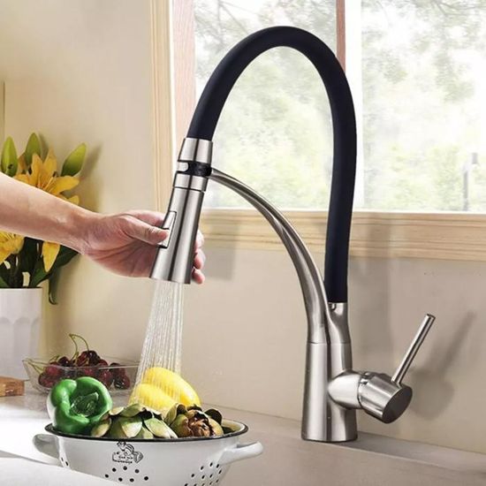 Pivotant à 360° : le robinet a une fonction pivotante à 360°, ce qui augmente considérablement l'amplitude de mouvement du robinet. Une large gamme d'applications nécessitant de l'eau, le tout dans le robinet cascade. Robinet de Cuisine Extractible en Acier Inoxydable 3 Modes de Jet Rotation à Arche Haute à 360°] --- Le mitigeur cuisine pivoter à 360°, offrant suffisamment d'espace pour divers éviers, y compris les éviers simples et doubles. La buse à arc élevé offre suffisamment de hauteur pour remplir et nettoyer les grands bocaux et pichets Il peut répondre aux besoins en eau à différents moments de l'année. Saeuwtowy Mitigeur évier Pulvérisateur Double Fonction Robinet De Cuisine–Pivotante à 360 Le robinet peut non seulement basculer entre les modes de jet d'eau, mais également régler la position de la sortie d'eau, ce qui facilite le nettoyage de la vaisselle et de l'évier. En tournant la poignée de l'interrupteur du robinet, le flux d'eau chaude et froide peut être commuté librement. Robinet extractible : le mitigeur de cuisine avec douchette extractible s'étend de 18 cm, ce qui facilite le nettoyage de tous les coins de la vaisselle et de l'évier. Mitigeur Avec Douchette 360° extractible 2 Modes de Pulvérisation, Chaud et Froid. 4,7 / 5. 6 avis. Prix de comparaison. 59,99 €. 37,19 € · STANEW Robinet...