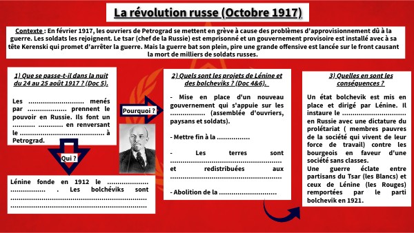 Dans les limbes de la Révolution russe, les Alliés et le sort de la famille impériale, mars-août 1917 - Le site des éditions de l'Artilleur Les difficultés militaires et les souffrances des civils en Russie entrainent une montée de la contestation contre le pouvoir impérial. Les révolutions de l'année 1917 mettent fin au régime impérial puis permettent l'arrivée des bolcheviks au pouvoir. Ces derniers établissent progressivement un régime communiste La Révolution Russe De 1917 Pdf La Révolution Russe De 1917 {fiche D'histoire Quelles Sont Les Causes En 1917, la Russie bascule en huit mois du tsarisme au régime bolchevique. Cette double révolution marque un tournant majeur du XXe siècle... Les officiers de l'armée russe le serment d'allégeance à la révolution d'octobre.1917.Les soldats se sont réunis à la place du