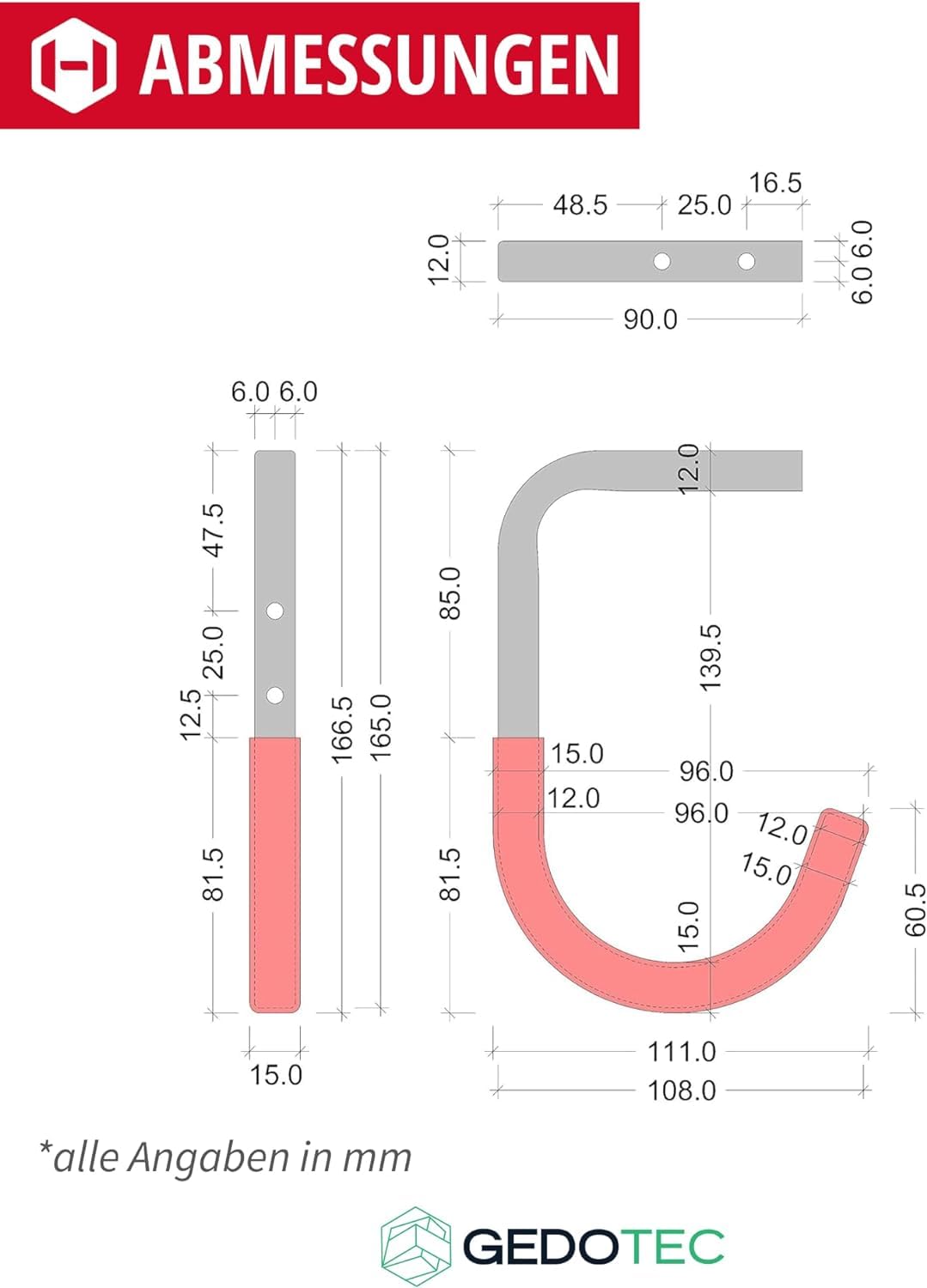 gedotec® Vélo crochets pour montage mural & plafond Crochet mural - en Gedotec Support pour Clavier | 1 Jeu de tiroirs pour Clavier à Monter... Gedotec Support Mural – Crochet Mural à Visser En Acier Galvanisé | Duo | 1 Crochet Pour Appareil Longueur : 90 Mm Avec Matériel De Fixation | Crochet Polyvalent En Métal | Support Mural Garage Gedotec Console Pliante Pliable|Support d'abattant Support d'abattant...