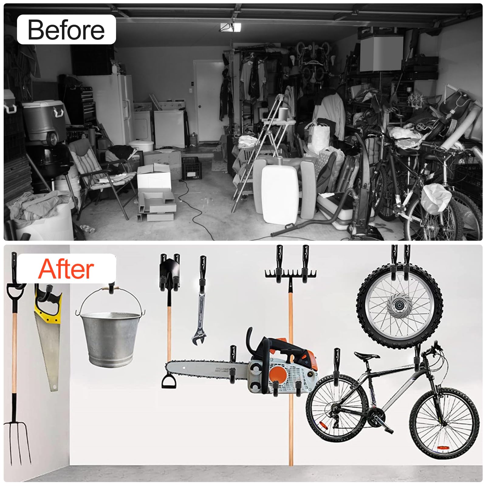Le cintre a un protecteur de bras en EVA, protège efficacement les outils et ne causera pas de rayures. Caractéristiques : Couleur : noir. Support de rangement de garage avec protection EVA, protégez vos effets personnels contre les rayures ou les dommages. Matériau : acier de qualité supérieure. Largement utilisé : vous pouvez monter ces crochets de rangement de garage robustes dans le garage, le magasin, la cave, l'abri de jardin, la cuisine, la salle de bain, la buanderie pour un rangement efficace. Étape 3 : Placez le boulon d'ancrage en plastique gris dans le trou. Lot de 4 crochets muraux d'échelle avec 8 vis de montage et 8 chevilles en plastique, ces crochets peuvent être fermement montés sur les cloisons sèches, les montants muraux et d'autres types de murs, facilement et rapidement. Nos ancrages conviennent uniquement pour le bois dur et les murs communs. Personne responsable dans l'UE Lot de 4 crochets muraux pour échelle de garage, crochets de rangement robustes pour garage, crochets de plafond utilitaires et organiseur pour bois, outils, vélo Diverses fonctions : Les crochets de rangement de garage robustes peuvent contenir des pelles, des balais, des tuyaux, du bois, des vélos, des échelles et d'autres articles en vrac. Étape 4 : Fixez la vis et le crochet de plafond dans l'ancrage. 8 ancrages pour cloisons sèches Lot De 4 Crochets De Garage Robustes Pour Accrocher Des Outils Crochets De Rangement Pour Garage Crochets Muraux Utilitaires Pour Organiser Les Outils De Garage Et De Jardin Noir 90370309 Matériau de haute qualité : ce support de rangement pour garage est fabriqué en acier tubulaire carré, durable et robuste, avec revêtement en poudre et résistant à la rouille. Crochet De Stockage Garage Lot De 4 Crochets De Rangeent Robustes Pour Garage, Kayak, Grande Crochet Pour Rangement Garage Dimensions : 27,9 x 33 cm (L x H). Diverses fonctions : les crochets de rangement de garage robustes pour plafond de garage sont parfaits pour les chaises pliantes, les cannes à pêche, les échelles, les vélos, les outils, les tuyaux d'arrosage, le bois, le matériel de sport et d'autres articles encombrants. Étapes d'installation : Étape 1 : Marquez la position sur le plafond avec un marqueur; Étape 2 : Puis percez des trous avec une perceuse à percussion. PYBTOOL Crochets utilitaires pour ur de garage, crochets de rangeent... Fournit une solution de rangement au-dessus de la tête, économise de l'espace.