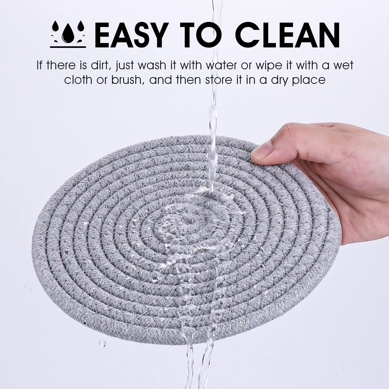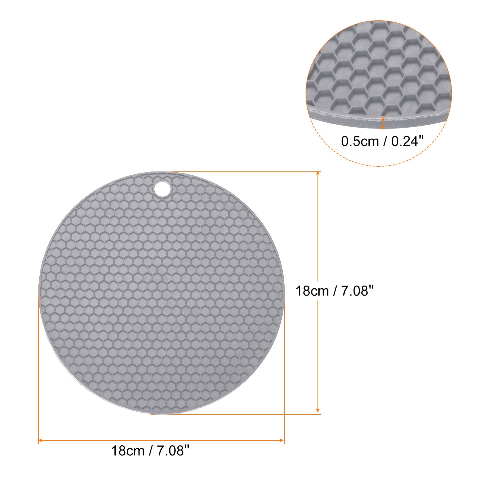 La surface avec texture en nid d'abeille peut jouer un bon effet antidérapant tout en dissipant mieux la chaleur. Les dessous de plat sont très doux et pliables, ce qui ne se déforme pas, même en appuyant dessus, ou tirer, et ils retrouveront leur aspect d'origine dès maintenant. sourcing map Silicone Dessous-de-Plat Tapis 2Pcs, Rond Chaud Poêle Résistant à la chaleur de -75,6 °C à 230 °C, protégez votre plan de travail ou votre table des casseroles chaudes, passe au four, au congélateur, au micro-ondes et au lave-vaisselle. Couleur : gris clair, noir. Vous pouvez facilement les ranger dans un tiroir ou les accrocher à un crochet lorsque vous ne vous en servez pas Caractéristiques : Nom de l'article : dessous de plat en silicone., Matériau : silicone. Multifonction : le dessous de plat protégera non seulement votre comptoir, mais aussi comme ouvre-bocal, support de casserole chaud, grand sous-verre, gants chauds, repose-cuillère, dessous de plat, tapis chaud, protecteur, tapis de séchage, ou partout où vous avez besoin d'une meilleure adhérence ou d'une protection extrême contre la chaleur ou le froid Matériau de qualité : fabriqué à partir de silicone, durable et antidérapant, ne se déforme pas facilement. Ces coussins chauffants antidérapants et les gants de cuisine sont conçus avec un trou dans les coins. Contenu de l'emballage : 2 dessous de plat ronds en silicone. Lot De 6 Dessous De Plat Ronds Et Carrés Napperon En Silicone Noir Sous Le Creuset Dessous de Plat, Silicone, Résistant Jusqu'à 250°C, 20 cm... Passe au four, au congélateur ou au micro-ondes Dimensions (L x l x H) : 16 x 16 x 0,5 cm., Poids : 125 g.