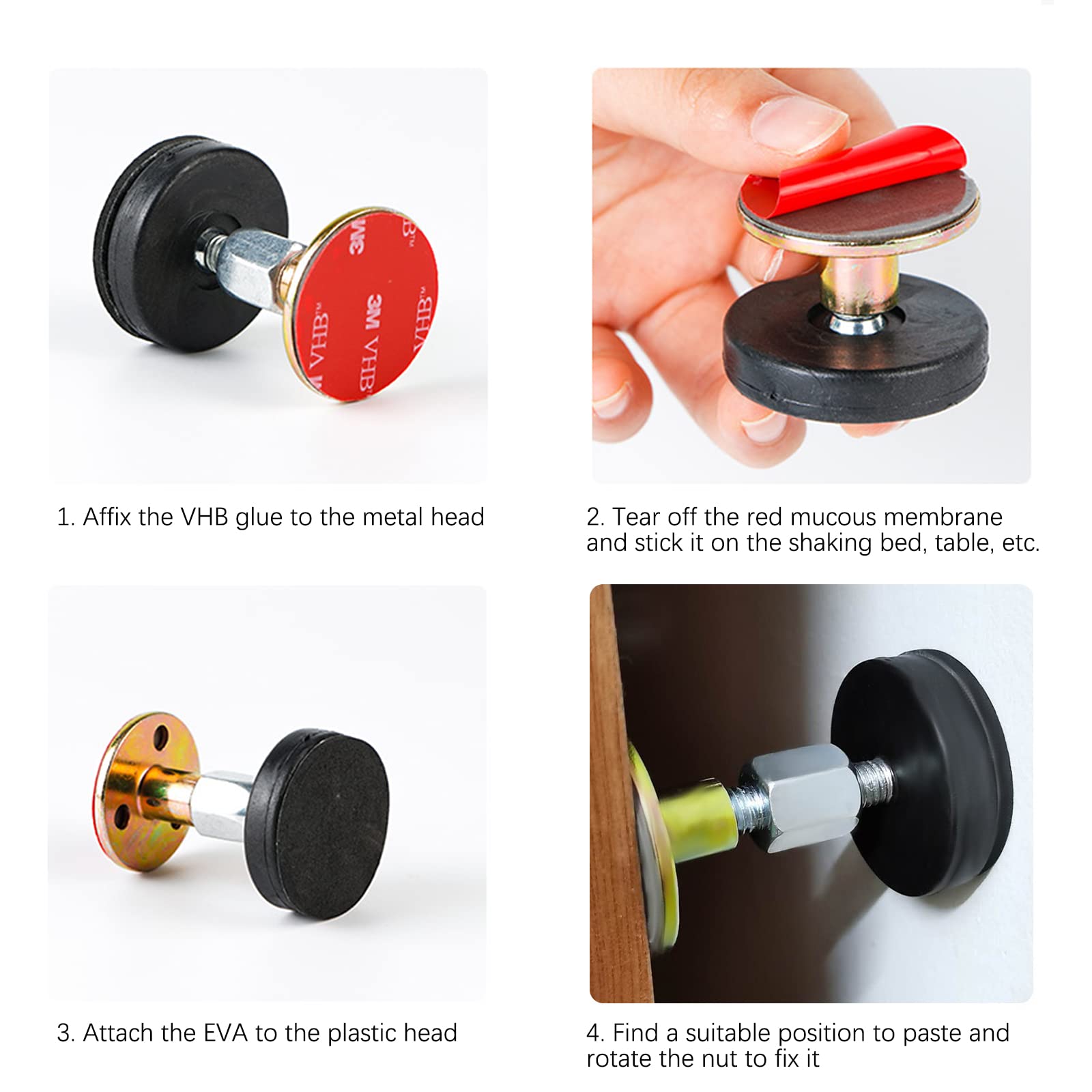 Lot De 4 Butées De Porte Pour Plinthes, Butées De Porte D'Extérieur Bouchons de tête de lit filetés réglables noirs De jour comme de nuit, êtes-vous toujours ennuyé par le tremblement de la tête de lit ? Ou vous avez peur que le tremblement des meubles n'abîme le mur ? Les meubles qui tremblent font non seulement du bruit, mais rendent également votre corps inconfortable lorsque vous vous asseyez sur le siège ou que vous vous allongez sur le lit. Fournir un support solide et anti-choc Ce sont les outils anti-chocs les plus efficaces du marché. Les butées de lit pour tête de lit peuvent non seulement être utilisées comme outil anti-secousses de cadre de lit, mais également utilisées pour tous les meubles faciles à secouer, tels que les canapés, les étagères, la table, les armoires et tout autre article contre le mur Hazena Butées de tête de lit pour ur anti-secousses – Protège le ur... Troisième étape Placez le coussin EVA à l'autre extrémité de la tête métallique. Cadre de lit fileté anti-tremblement réglable, butées de tête de lit Quatrième étape Trouvez la bonne position, collez-la et tournez l'écrou pour la fixer., Réglable Première étape Mettez l'adhésif VHB sur la tête métallique. Les butées de tête de lit protègent le mur contre les dommages, répondent aux normes de soutien et d'anti-basculement, et sont capables de répondre aux besoins de la plupart des situations dans la famille. Achetez Paquet de 4 butées de tête de lit filetées réglables, cadre de lit outils anti-secousses, fixateur anti-secousses de chevet (5,9 cm, réglable, 6,7 cm). Nos outils anti-vibration pour cadre de lit sont capables de résoudre ces problèmes efficacement, de maintenir votre meuble fermement stable et de réduire le bruit.