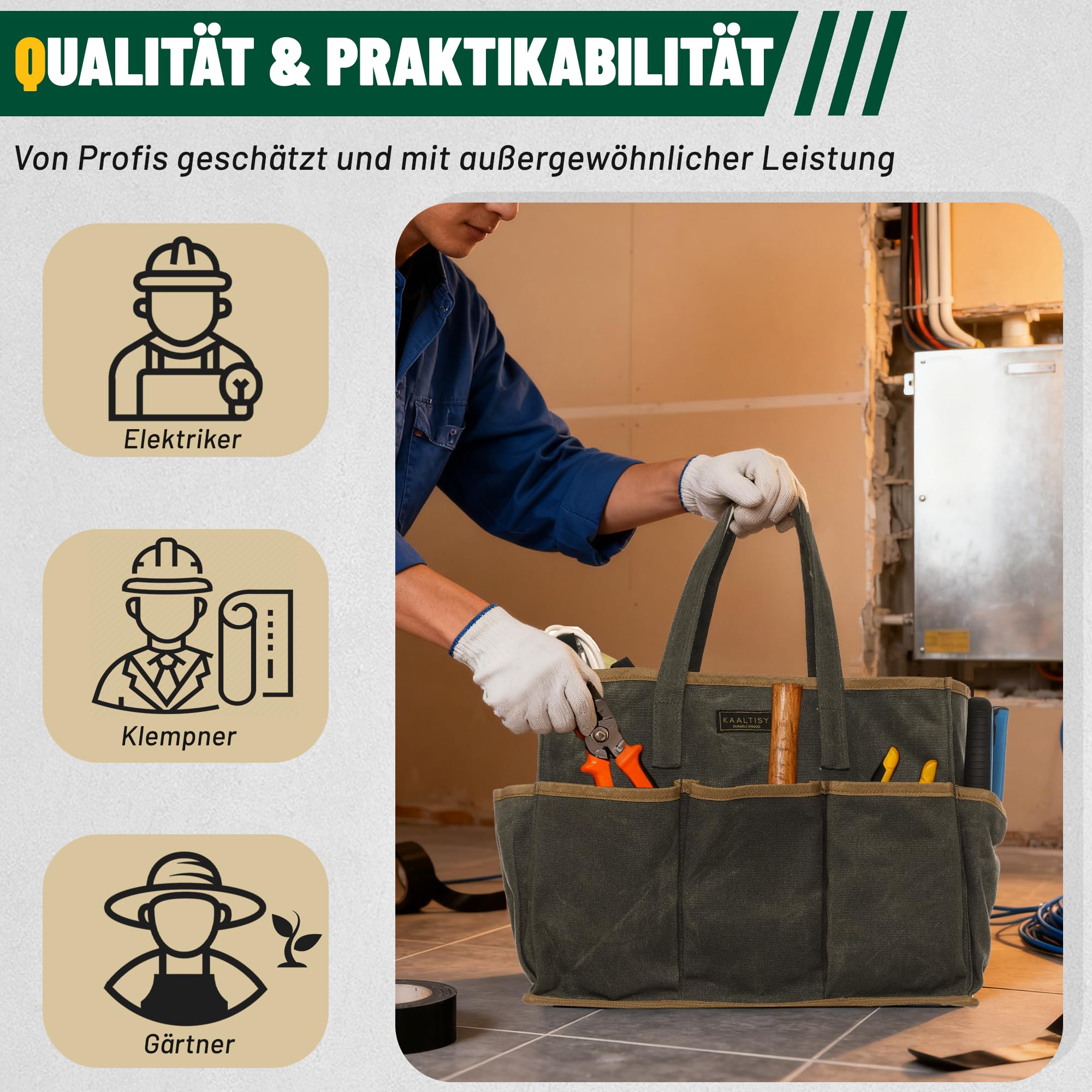DIMENSIONS: 15 ( L ) x 7 ( l ) x 10 ( H ) In / 38 x 18 x 25cm. Sac à outils en cuir Réf. 166/35 Vert Avec des dimensions de 14L x 5,5W x 10,5H, ce sac fourre-tout offre un grand espace de rangement, organisant efficacement les outils et réduisant l... Sac à Outils En Toile Cirée Pliable 16 Oz Avec 10 Poches Et Barres De UTILISATIONS & SCENARIES: Peut être utilisé comme cadeau de Noël / Nouvel An / Anniversaire / Thanksgiving / Anniversaire pour vous-même ou votre famille / amis qui sont électriciens, mécaniciens, jardiniers, menuisiers, artisans, ingénieurs, ou autres professions. Tablier de menuiserie pour homme Tablier de travail pour homme de 20 oz... DESIGN PLIABLE: Le cadre métallique sur le dessus est conçu pour que le sac à outils reste en bonne forme. La poche principale intérieure et 8 fentes permettent de ranger des clés, des niveaux à bulle, des pincettes, des petites pelles, des pistolets à clous pneumatiques, des tournevis et d'autres outils à main que vous utilisez quotidiennement. STRUCTURE GÉNÉRALE: 2 poignées robustes pour un transport facile. ✅ SPÉCIFICATION Dimensions du sac à dos : 42 cm x 33 cm x 29 cm Dimensions de la partie dépliable : 34cm x 30cm x 26cm Charge maximale : 8kg Matériel : PVC + m