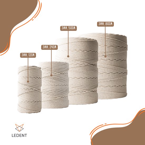 C'est pourquoi nos produits peuvent contenir jusqu'à 20 % de polyester. FIL DURABLE - Notre fil à macramé est fabriqué à partir de vieux vêtements et tissus et se compose d'environ 80 % de coton et 20 % de polyester, ce qui permet de réduire considérablement la quantité d'eau utilisée dans le processus de production. Cela signifie que le fil macramé que vous recevez a été fabriqué avec soin et attention par des artisans fiers de leur métier. Fil à macramé simplement torsadé Le fil macramé à simple torsion est généralement facile à manipuler et à travailler. C'est un matériau formidable avec lequel vous pouvez travailler, que vous soyez un débutant ou un artiste expérimenté en macramé. Cela permet d'économiser beaucoup d'énergie et d'eau par rapport au coton neuf, et nous utilisons les matières premières de manière durable. Vous recevrez un fil de haute qualité de couleurs ou éppaisseurs différentes, avec lequel vous pourrez bricoler ! eriWoolArt Corde acraé 3 Coloré Nature - Fil acraé Corde 200 La combinaison de la durabilité, de l'absence de boulochage et de la possibilité de peigner facilement la corde en fait un excellent choix pour ajouter de beaux détails à vos projets de macramé. Tant les débutants que les artistes en macramé expérimentés trouvent ce type de corde agréable à travailler. Kit Macramé Corde De Macramé Ledent, Simple Torsion (3mm, 120M, Mélange De Torsion Fil Doré Vous pouvez être sûr que le fil macramé est fabriqué à partir de matériaux soigneusement sélectionnés, qui répondent aux normes les plus strictes. VALEUR DURABLE ET ÉCOLOGIQUE - Les fils fabriqués à partir de déchets sont transportés de manière durable, emballés dans un film rétractable de 12,5 microns 100 % recyclable et ont une empreinte écologique nettement plus faible. 100 % coton L'utilisation de 100 % de coton recyclé fait de cette corde une alternative durable. Esthétiquement agréable Travailler avec de la corde à macramé simplement torsadée présente de nombreux avantages, notamment sa facilité d'utilisation, sa durabilité, son esthétique, sa polyvalence et son adaptation à différents projets. UTILISEZ VOTRE CRÉATIVITÉ - Notre fil épais en couleur naturelle et d'épaisseur de 3mm peut être utilisé pour toutes sortes d'activités créatives de macramé et de bricolage, telles que la création de suspensions pour plantes, de décorations murales, de sous-verres et de plumes. FIL DE QUALITÉ DE BELGIQUE - Nous fabriquons le fil à macramé en Belgique. De plus, il ne s'effiloche pas et est facile à peigner. Fil macramé à double torsion Nos fils macramé double torsion sont fabriqués à partir de fibres naturelles soigneusement sélectionnées qui offrent une texture douce et souple. Nos matières premières proviennent directement de fabricants expérimentés de toute l'Europe. Ledent macramé touw, (3mm, 2 x 120M, marineblauw & ecru), dubbel... UTILISEZ VOTRE CRÉATIVITÉ - Notre fil épais en couleur naturelle et d'épaisseur de 3mm peut être utilisé pour toutes sortes d'activités créatives de macramé et de bricolage, telles que la création de suspensions pour plantes, de décorations murales, de sous-verres et de plumes Le fil de coton recyclé contient également d'autres fibres, comme le polyester. Il existe de nombreux projets DIY que vous pouvez réaliser avec des cordes en macramé.