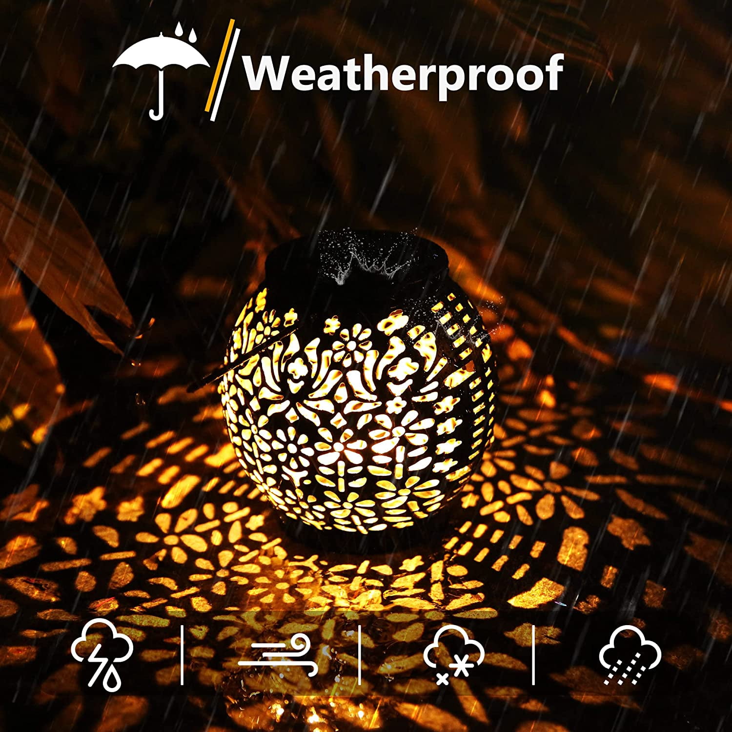Capacité de la batterie : 1,2 V/600 mAh. Design creux rétro unique avec projection d'étoiles : ces lanternes ont un motif rétro creux, offrent un effet d'éclairage fantastique à la tombée de la nuit lorsqu'elle est allumée, et offrent une atmosphère romantique pour votre jardin, patio, cour. Source de lumière : LED. Lampes solaires de jardin blanc chaud : design creux avec des lumières blanches chaudes, ajoute une décoration de jardin romantique et unique pour vous la nuit. Que vous souhaitiez orner le jardin, la terrasse, le porche, le rebord de fenêtre, la clôture, la pelouse extérieure, la table, le balcon, la cour, l'allée, ou les emmener avec vous pour le camping ou les sorties à la plage, ces lanternes peuvent être transportées et installées sans effort Brizled Lot De 2 Lanternes Solaires à DEL D'extérieur à Les lampes solaires de paysage s'allument automatiquement la nuit et fonctionnent jusqu'à 12 heures. Caractéristiques : Le design rétro unique de la lumière creuse avec une lueur blanche chaude est la décoration parfaite pour le jardin, le chemin, le jardin, la terrasse, la pelouse, la cour, l'allée, etc. Couleur de la finition : noir., Matériau : ABS. La lueur blanche chaude crée non seulement une atmosphère chaleureuse et festive dans divers endroits tels que le jardin, la terrasse, la piscine, la cour, l'allée, etc. Lot De 2 Lanternes Solaires De Jardin En Fer, Lampe Solaire Suspendue... Au bas de la lanterne, il y a un film projecteur d'étoiles (tandis que d'autres n'ont pas de film de projecteur en bas), projette un joli motif et crée une atmosphère chaleureuse et agréable pour votre terrasse. Durée de fonctionnement : 6 à 12 heures après une charge complète. Contenu du paquet : 2 lanternes LED., 2 crochets de suspension. BrizLabs Luces solares de jardín, paquete de 4 32 luces LED de lucié Température de fonctionnement : -10 ℃ à 45 ℃. 1 manuel d'utilisation (français non garanti). 2 façons d'utilisation : il suffit de l'accrocher sur les porches, les arbres, les pergolas avec le crochet de suspension pratique ou de le placer sur la table, le chemin, etc. Film projecteur d'étoiles au bas de la lanterne, projette un joli motif et crée une atmosphère chaleureuse et agréable pour votre terrasse. Remarque : ce n'est que lorsque l'interrupteur d'alimentation est allumé, que la lanterne solaire peut être chargée. 2 modes d'utilisation et installation facile : il y a un crochet de suspension pratique, il suffit de l'accrocher sur les porches, les arbres, les pergolas avec l'anneau de suspension ou posé sur une table, un rebord, etc. Lampes solaires d'extérieur étanches : les lanternes solaires suspendues ont un niveau d'étanchéité élevé IP65., Ne vous inquiétez pas de la pluie, de la neige, du gel ou du grêle.