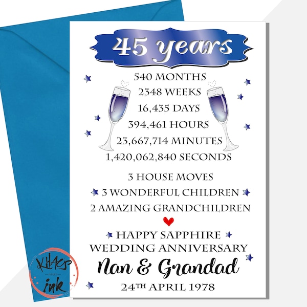 Mesure 16 cm x 16 cm. Superbe carte faite à la main anniversaire Finition à la main avec paillettes étincelante et strass , 16 x 16 cm , Enveloppe inclus FONTAINE DE DEVOTION SAINTE APOLLINE91 CHALOU-MOULINEUX 91131FRANCE Nous répondre à chaque occasion et conception constamment de nouvelles gammes pour vous garder à revenir pour plus. Eine atemberaubende handgefertigte Jubiläumskarte von White Cotton Cards. Inklusive Umschlag. Maße: 16 x 16 cm. Karten werden mit leerer Innenseite mit Platz für eine persönliche Nachricht geliefert. White Cotton Cards ist ein Unternehmen für handgefertigte Geschenke und Grußkarten White Cotton Cards est un cadeau fait main cartes et société. En coton blanc à cartes nous sommes fiers de notre travail et chaque effort est fait pour rendre chaque produit parfait. Toutes les cartes et les cartes cadeaux en coton blanc à sont individuellement fait à la main au Royaume-Uni en faisant de chaque produit que vous achetez de nous vraiment unique et tout comme vous, ce petit plus spécial. WHITE COTTON CARDS Champagne Flutes To My Husband On Our Sapphire
