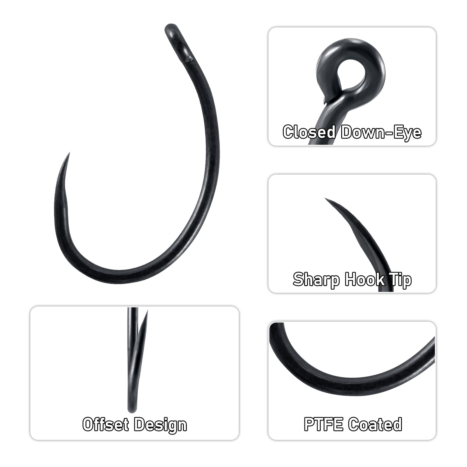 BBS sont dotés d’un guide supplémentaire pour l’anneau en D, ce qui permet de réaliser des Chodda-rigs, Zip-rigs et autres connexions coulissantes avec la bouillette ou un autre appât à hameçon. Facile à utiliser, pas de nœuds coulissants. Assure une présentation parfaite de votre appât. Revêtu de TitanX gris mat qui donne une finition exceptionnellement solide et non réfléchissante. La sélection se compose de cinq hameçons sans ardillon différents dans plusieurs tailles.