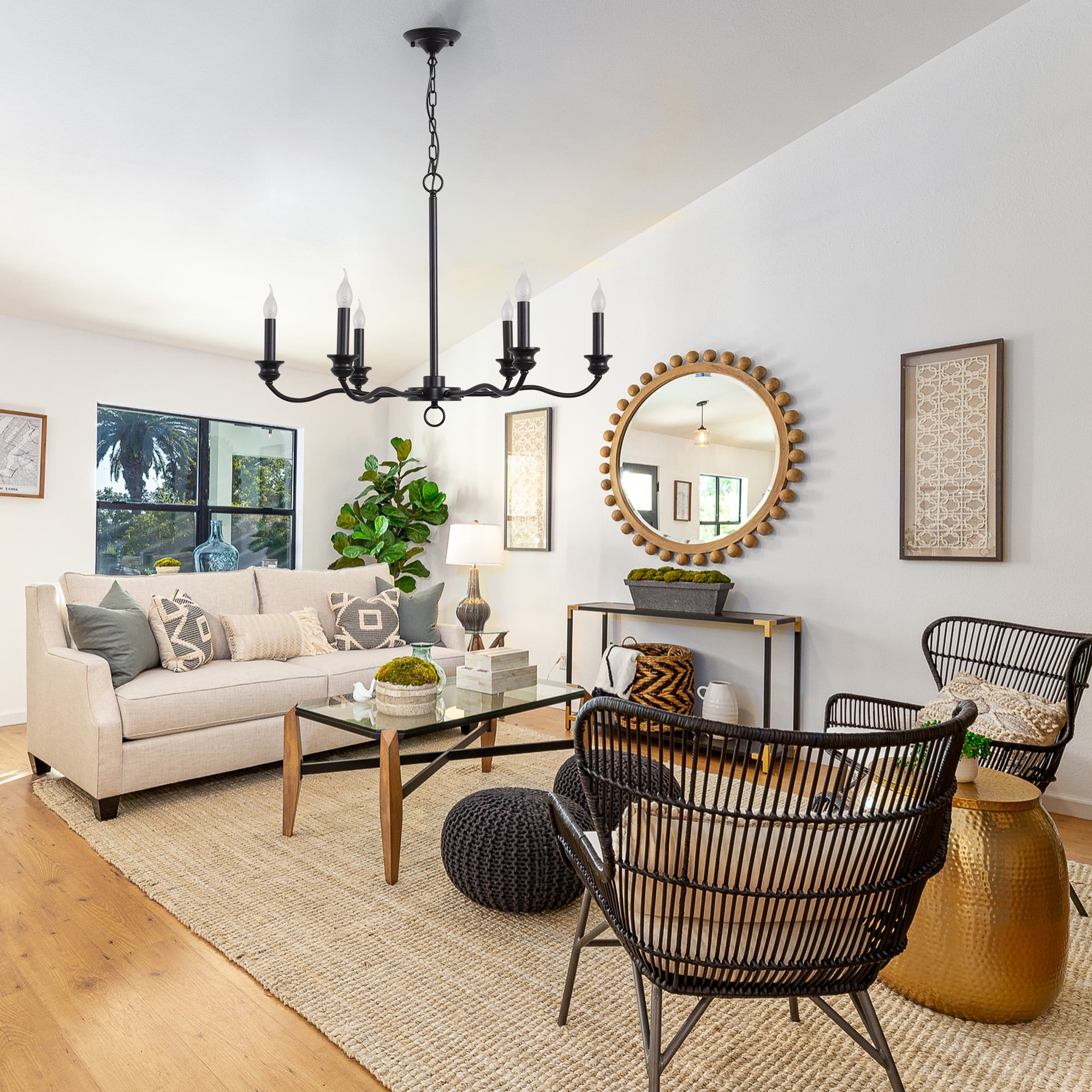 Zhllmq Lustre De Ferme à 8 Lumières Noir Et Doré, Luminaire De Salle à Manger Pour Cuisine, îlot, Foyer, Salon, Entrée, Lustres Industriels Rustiques En Fer