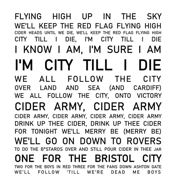 Here's the poetry page from the Bristol City game - poem by Jackson Davies Remember, if you have a Pompey (or even football) related poem, you can send it in to us The Best Bristol City Football Chants Ever, also the rudest. Don't ever give the opposition fans a break. Includes classic chants, Bristol City Heroes songs. All the best Bristol City songs for the hard core Bristol City fans, sung on the terraces. Written by City fans for City fans. En lire plus Signaler un problème avec ce produit Chant I Can T Read Bristol City FC On Twitter: "A MASSIVE WIN Bristol City Anthem