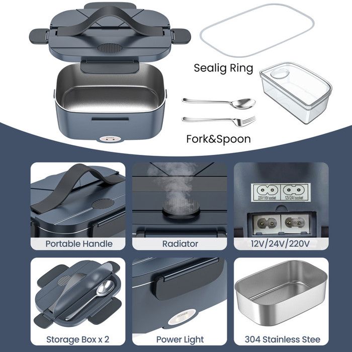 Plus de restauration rapide. Fini les restes froids. Design étanche et facile à transporter : le design sécurisé étanche maintient vos aliments contenus et empêche les déversements. Carsolt Boîte à déjeuner électrique 3 en 1 portable 100 W étanche pour adultes voiture/camion/bureau avec récipient SS de 1,8 L, fourchette, cuillère, sac de transport, 12 V/24 V/110 V Que vous soyez un chauffeur de camion confronté à de longues heures d'autoroute, un employé de bureau coincé entre les réunions ou un constructeur travaillant à l'extérieur, cette boîte à déjeuner vous apporte vos repas préférés : cuits à la vapeur, frais et prêts. Ne pas mettre la boîte à lunch dans un micro-ondes. Boîte à Lunch Chauffante - JF-ENG - 1.5L - Acier Inoxydable - 12V/24V... Boîte à déjeuner électrique 3 en 1 pour la maison, le bureau et les voyages : cette boîte à déjeuner chauffante polyvalente pour homme prend en charge 110 V-230 V pour une utilisation à la maison ou au bureau, et 12 V/24 V pour une utilisation dans les voitures et les camions, ce qui la rend parfaite pour les conducteurs de camion, les employés de bureau et les voyageurs. Il est conçu pour le chauffage électrique uniquement. Toujours ouvrir le couvercle d'échappement de vapeur avant de chauffer pour éviter l'accumulation de pression. Avec sa poignée ergonomique, il est facile à transporter partout où vous allez, ce qui en fait une solution sans tracas pour vos besoins quotidiens de déjeuner Boîte Chauffante Lunch Box Électrique - ZGEER - Modèle 220V - Acier... Boite A Dejeuner Electrique Boite Repas Chauffante Boîte à Déjeuner Chauffante électrique Pour Voiture, Camion Boite A Dejeuner Chauffante 12V Heated Lunch Box Juste de la vraie nourriture, comme vous l'aimez.