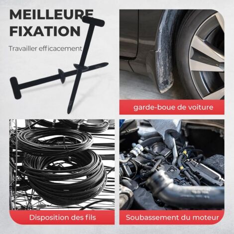 Serre Cable,attaches autobloquantes universelles en nylon rivets en plastique pour réparation automobile, fixation rapide et trou Matériau en nylon durable : ces colliers de serrage sont fabriqués en nylon très solide et résistant aux UV, ce qui leur permet de résister à la pluie, à la chaleur et à une utilisation quotidienne. Une solution pratique pour l'entretien quotidien des voitures. Serre Cable Plastique OTOTEC Lot De 50 Rivets Aveugles De Clips de rivets en plastique 100 pièces - Attaches de protection universelles noires pour... Mousqueton De Fixation Voiture Attaches De Câble , Attaches Autobloquantes Universelles En Nylon , Rivets En Plastique Pour Réparation Automobile , Fixation Rapide Et Trous (50 Pièces Boucle De Serre Cable Universelle Boucle de serre-câbles universelle en nylon : ces boucles de serre-câbles sont conçues pour remplacer les vis et les clips dans plus de 95 % des modèles de voitures. Colliers de serrage multi-usages : bien qu'ils soient parfaits pour les réparations automobiles, ces colliers de serrage sont également utiles à la maison, dans le garage ou sur les chantiers. Idéal pour une utilisation à long terme à l'extérieur ou dans la voiture, où la durabilité est essentielle. Installation rapide en un seul bouton : grâce au mécanisme autobloquant, ces colliers de serrage s'installent facilement et sans outils. Compacts et portables : Ces serre-câbles sont suffisamment petits pour être rangés dans la boîte à gants ou la boîte à outils et constituent un substitut fiable en cas de problème inattendu dans le véhicule.