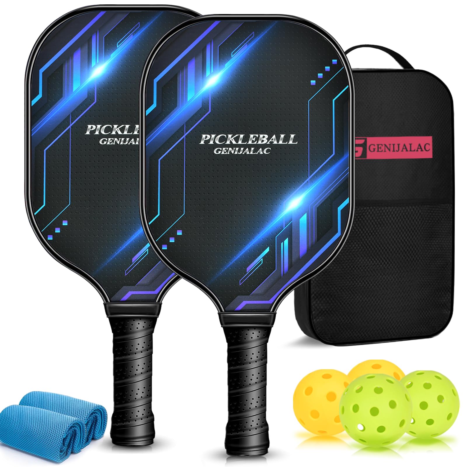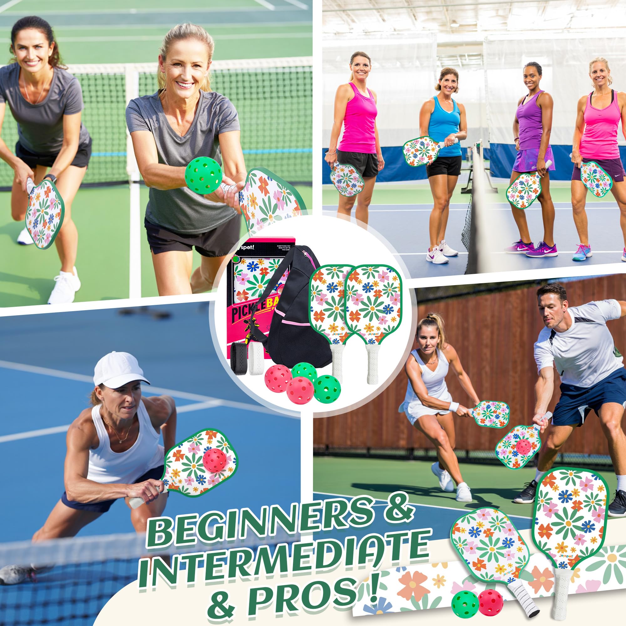L'ensemble de pickleball comprend tout ce dont vous avez besoin pour jouer : des pickleballs un sac de transport et quatre balles. Ensemble complet de pickleball pour débutants : cet ensemble de pickleball comprend deux raquettes de haute qualité avec une surface en fibre de verre et un noyau en nid d'abeille PP de 10 mm pour une excellente expérience de jeu. Ensemble de pagaies de pickleball professionnelles, cadeau d'anniversaire, raquettes de Il dispose de deux balles intérieures et deux balles extérieures, permettant aux joueurs de profiter des pagaies de pickleball en fibre de verre dans une variété de paramètres et de conditions. C'est un ensemble de raquettes de pickleball léger avec une large zone de frappe et beaucoup de bons endroits pour frapper la balle, permettant aux joueurs d'être rapides et en contrôle. Les poignées confortables maintiennent les joueurs au sommet de leur jeu, même pendant les matchs prolongés. Sac de transport élégant avec notre logo pour un rangement facile. Améliorez votre expérience de raquette de pickleball avec nos pagaies de qualité professionnelle. Satisfaction du client : les clients adorent nos pagaies S Sportify Prime Pickle Ball pour leurs performances et leur durabilité exceptionnelles. Avec protection renforcée des bords, ils résistent aux jeux intenses. De nombreux clubs utilisent nos pagaies de pickleball pour attirer de nouveaux joueurs. Niupipo Lot De 2 Pagaies De Pickleball, Surface En Fibre De Verre Selkirk – Raquette de pickleball aplifiée en fibre de verre avec noyau... C'est un excellent cadeau pour les mamans, les papas, les enfants ou les amis. Contrôle et puissance améliorés : la combinaison des pagaies de pickleball en fibre de verre et de la technologie de noyau en nid d'abeille en polypropylène offre un mélange équilibré de contrôle et de puissance à chaque coup.