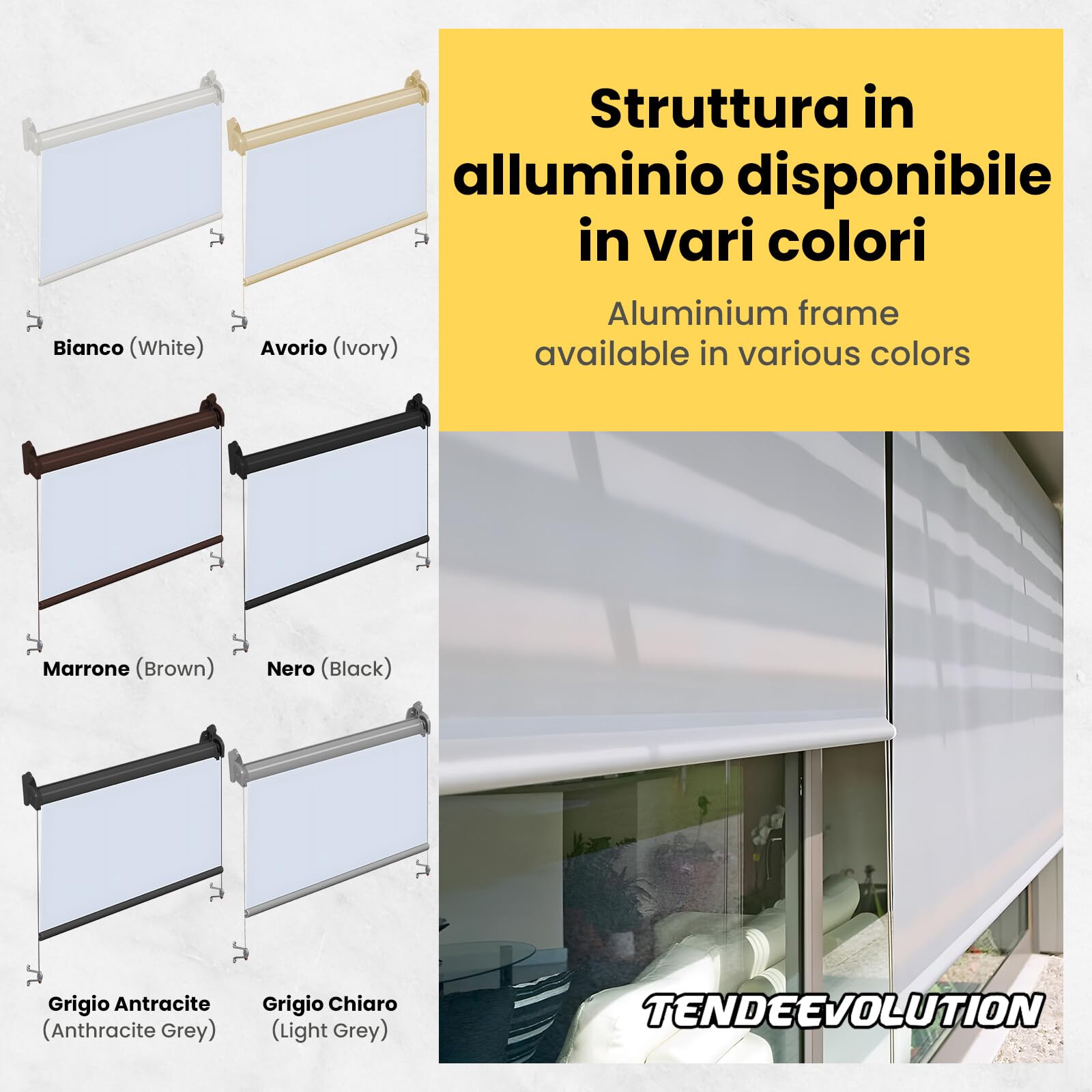 Auvent à capuche Pour vérandas, balcons, portes et fenêtres. Le mouvement de la toile est guidé par des barres latérales en acier inoxydable, assurant une stabilité parfaite même en cas de vent, sans frottement contre les fenêtres En tissu ou PVC en différentes couleurs et tailles. 🛠️ INSTALLATION SIMPLE DU STORE VERTICAL EXTERIEUR TERRASSE - Pas besoin d’être bricoleur chevronné! Stores Enrouleurs TENDEEVOLUTION Store Banne Vertical Extérieur Sur Mesure Avec Store Extérieur Vertical Sur Mesure Stores extérieurs modèle STORE ENROULEUR EXTÉRIEUR ROLLOEXTÉRIEUR - M... Ce Store Extérieur Vertical est bien plus qu’un simple accessoire : c’est une solution technique et esthétique de qualité supérieure, conçue pour sublimer vos espaces extérieurs Toiles et tissus. Rideaux vénitiens en aluminium, plusieurs couleurs et tailles. 🇮🇹 QUALITÉ MADE IN ITALY POUR VOTRE STORE TERRASSE EXTERIEUR - Structure en aluminium et acier inoxydable, axe d’enroulement en fer galvanisé haute qualité : ce Store Banne est 100 % conçu et fabriqué en Italie. Pour la livraison : 15€ par commande - livraison à domicile sur RDV 🛡️ PROTECTION SOLAIRE ET INTIMITÉ AVEC STORE EXTERIEUR TERRASSE - Ajoutez du style à votre terrasse ou balcon avec notre Store Exterieur qui protège des rayons UV tout en offrant une excellente intimité. Rideaux anti-pluie en PVC transparent. Personnalisables avec attaches à crochets ou bras Motorisé ou manuel. Dimensions, coloris, ouverture manuelle ou motorisée, de nombreuses combinaisons s'offrent à vous. Découvrez notre guide pour bien choisir votre store vertical sur-mesure Personnalisé avec commande manuelle ou motorisée. ✨ ÉLÉGANCE ITALIENNE ET MATÉRIAUX PREMIUM - Ce Store Enrouleur Exterieur combine élégamment design italien et robustesse grâce à une structure en aluminium et acier inox, avec toile en PVC ou tissu acrylique Tempotest. Idéal pour le revêtement de chaises, fauteuils. 100 % imperméable, coupe-vent, indéchirable dans différentes tailles et couleurs. coussins, tabourets, sacs, sacs à dos et bien plus encore. 🎮 COMMANDES PERSONNALISÉES POUR UN CONTRÔLE TOTAL - Choisissez votre mode de commande : manuel avec manivelle (argan), motorisé, ou motorisé avec télécommande. Store Extérieur Vertical Avec Câbles Latéraux Graphite Purishade 180W X 250h Cm 88330909