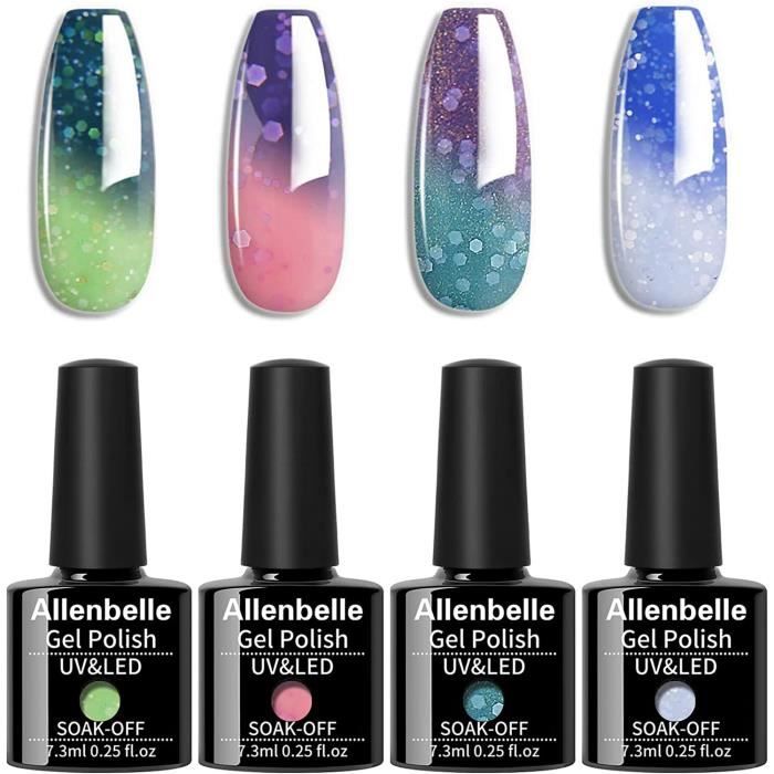 Rayer la surface de l'ongle avec une lime de grain 100. Imprégner chaque coton ou carré de cellulose avec une lotion remover soak off ou de l'acétone, placer celle-ci sur l'ongle puis entourer le doigt de papier aluminium Placer la main dans la lampe UV* 2 minutes ou lampe LED* 10 à 30 secondes., Step 3., Appliquer le vernis permanent couleur en fine couche sans oublier les bords lat éraux., Step 4., Placer la main dans la lampe UV 2 minutes ou lampe LED 30 à 90 secondes. Placer les mains 2 minutes dans la lampe UV ou 30 secondes dans la lampe LED., Step 6., Retirer les résidus collants de l'ongle avec du cleaner dégraissant (cleanser)., Step 7., Appliquer de l'huile pour cuticules sur les contours du doigt. YTD Likomey Vernis Semi Permanent Caméléon Vernis à Ongle Changement De COSCELIA Kit Vernis Sei Peranent Caéléon Kit Ongle Gel UV Coplet Effet:La couleur est changé selon la température. Durée jusqu'à 3 semaines Le rendu est parfait:l'ongle est brillant et les couches de vernis restent très fines., Marque:Vishine Volume:10 ml Eliminer ensuite les restes de vernis permanent avec un bâtonnet de buis. Vishine Vernis Gel Semi Permanent Caméléon Change de Couleur Vernis à... (Pour une couleur plus intense, appliquer une 2ème couche)., Step 5., Appliquer délicatement le Top Coat ou Top It Off sur l'ensemble de l'ongle.