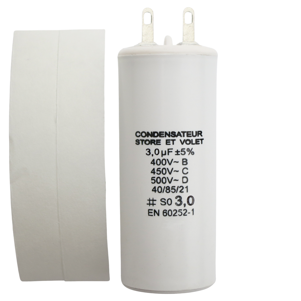 2 électrodes de connexion 2,8mm (3mm) - Compatible moteur de marque PROFALUX - Sans polarité, il peut être connecté dans n’importe quel ordre de branchement des fils de votre moteur condensateur 3,15uf spécial pour volet roulant avec sortie de cable Vous êtes sur le classement des meilleurs condensateur volet roulant de décembre 2025.Il regroupe les produits les plus vendus … Principaux points forts ; Capacitance. 3,15 Microfarad ; Marque. MiragesDesOndes ; Forme. Ronde, Rectangulaire ; Tension de fonctionnement. 450 Volts (courant... Condensateur 30uf Condensateurs Volet Roulant | Mikatec Condensateur 4uf plage modèle attraper un rhume ou trouver un condensateur de volet roulant somfy