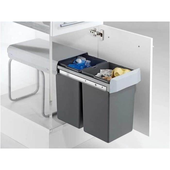 POUBELLE POUR MEUBLE DE CHANGE Wesco 755 601–85 encastrable Poubelle Double Boy Deluxe avec Extension complète, Gris alu Poubelle coulissante avec ouverture du couvercle automatique - 40 l - Amortisseur : Sans - Contenance : 40 L - Décor : Gris - Hauteur : 385 mm - Largeur : 338 mm - Matériau : Métal / Plastique - Nombre de seaux : 3 - Pour caisson de largeur mini : 400 mm - Profondeur : 480 mm - Sortie : Totale - Type Dimensions (H x l x P) : 340 x 435 x 360 mm., · Couleur : gris aluminium, Volume : 2 x 15 , Avec poignée bord , Couleur : Gris alu Poubelles intégrées - WESCO® ; 30 l; Bac à composter, Poubelles, Poubelle de tri des déchets, Poubelle intégrée · Le prix de ce produit est de '79 euros et '00... Poubelle Double Compartiments 2x50l Wesco Double Boy Deluxe Gris Aluminium - Acheter Sur Poubelle 2 Compartiment · Montage facile grâce au montage au sol de l'armoire. Avec une hauteur de montage de 41 cm et une profondeur de montage de 45 cm.