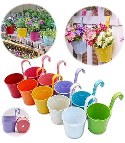 Un cadeau parfait pour la fête des mères. Lot De 10 Pots De Fleurs En Métal Avec Trou De Drainage Accrochez ces pots colorés où vous le souhaitez DIVCHI Lot de 10 pots de fleurs en métal à suspendre, petits pots de fleurs d'intérieur et d'extérieur pour plantes de jardin et décoration de la maison Le pot de fleurs suspendu peut apporter un style naturel et de la couleur à votre jardin. Les pots en métal en 10 couleurs différentes sont en métal résistant : il n'y a aucun risque qu'ils se cassent. Le manche amovible les rend aptes à différents usages : bureau, fenêtre, mur, clôture, n'importe où à l'intérieur ou à l'extérieur Taille pratique : ouverture : 10 cm ; base : 7,7 cm ; hauteur : 10 cm. Convient pour l'intérieur et l'extérieur. 2 pots de fleurs suspendus, avec trou de drainage et crochets, paniers... Trou de drainage Ces pots de fleurs en fer métallique ont des trous pour le drainage et la ventilation. Le pot de fleurs suspendu en métal est parfait pour la décoration intérieure et extérieure de la maison. DIVCHI Lot de 4 pots de fleurs à suspendre en métal robuste Pot de fleurs à suspendre en métal avec des couleurs vives et un beau design pour rendre votre jardin ou votre maison très joli. Égayez votre journée avec rouge, rose, orange, rose rouge, violet, jaune, bleu, vert clair, blanc et bleu lac. Accrochez-les partout où vous le souhaitez. Ajoutez du charme et de la couleur à votre jardin et à votre maison avec ces décorations extérieures à suspendre pour balcon. Bricolage : avec crochet amovible, vous pouvez également utiliser ces pots comme barils de rangement de bureau, porte-stylos et plus encore.
