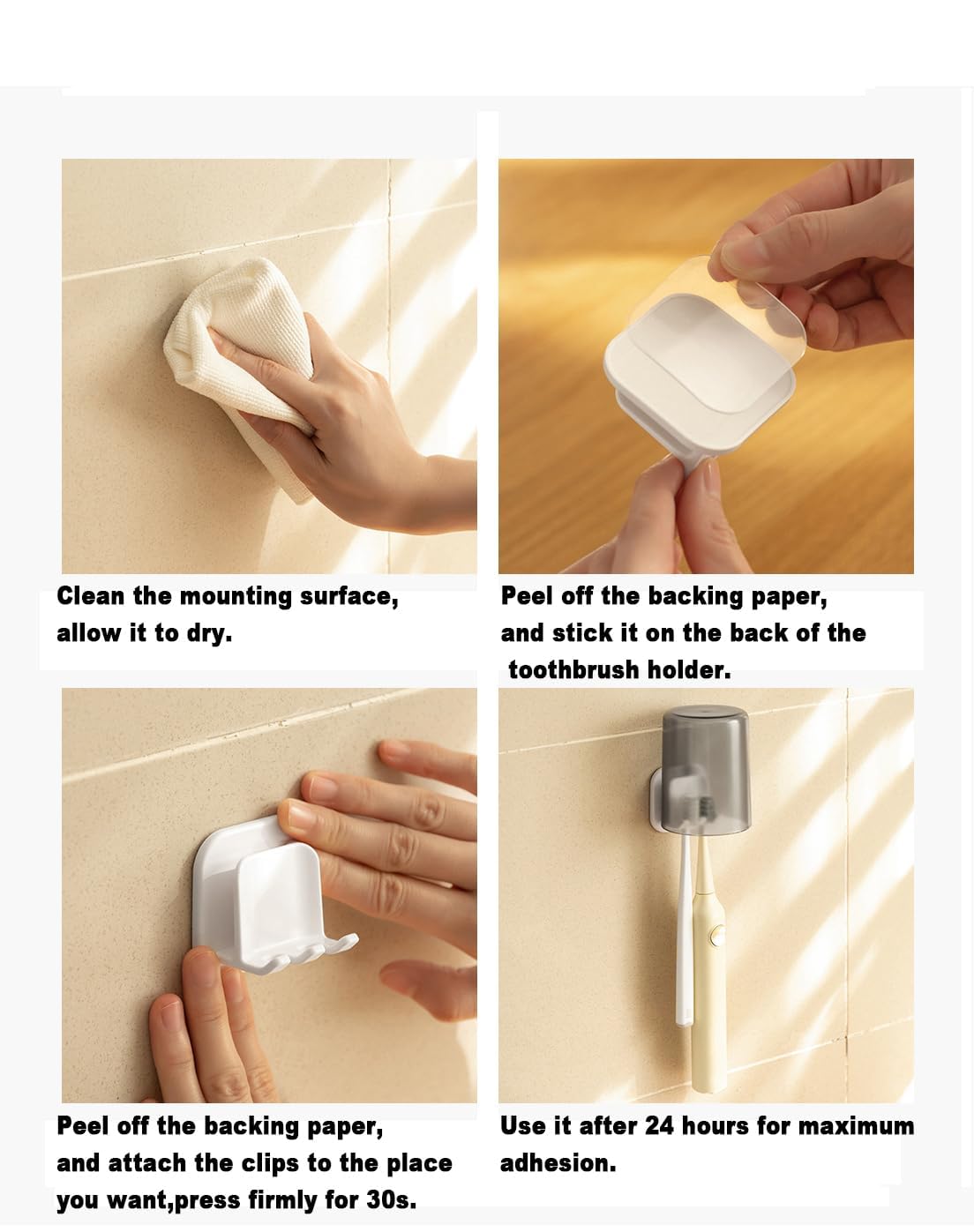 Un petit support de brosse à dents peut contenir deux brosses à dents et une tasse. Ce porte-brosse à dents autocollant peut être utilisé dans la salle de bain, la douche, le showroom, la cuisine, le camping-car, la caravane, etc. Ce porte... Large application : le support mural de brosse à dents peut non seulement être un support de brosse à dents, mais également un support de téléphone portable pour le chargement, le support de rasoir, le support de prise, la serviette, etc. Design simple : design mural simple et beau, économisant de l'espace. Radisoph Lot De 2 Porte-brosses à Dents Auto-adhésifs à Fixation Murale, Crochet Multifonction, étanche, 2 Emplacements Pour Brosse à Dents, Porte-gobelet Pour Suspendre La Salle De Bain, La Cuisine Lot de 2 supports de brosse à dents électrique, adhésifs et Contenu de l'emballage : 2 supports muraux pour brosse à dents Auto-adhésif : support de brosse à dents à 2 emplacements facile à installer et à enlever, pas besoin de clouer ou de percer, sans dommages de surface.