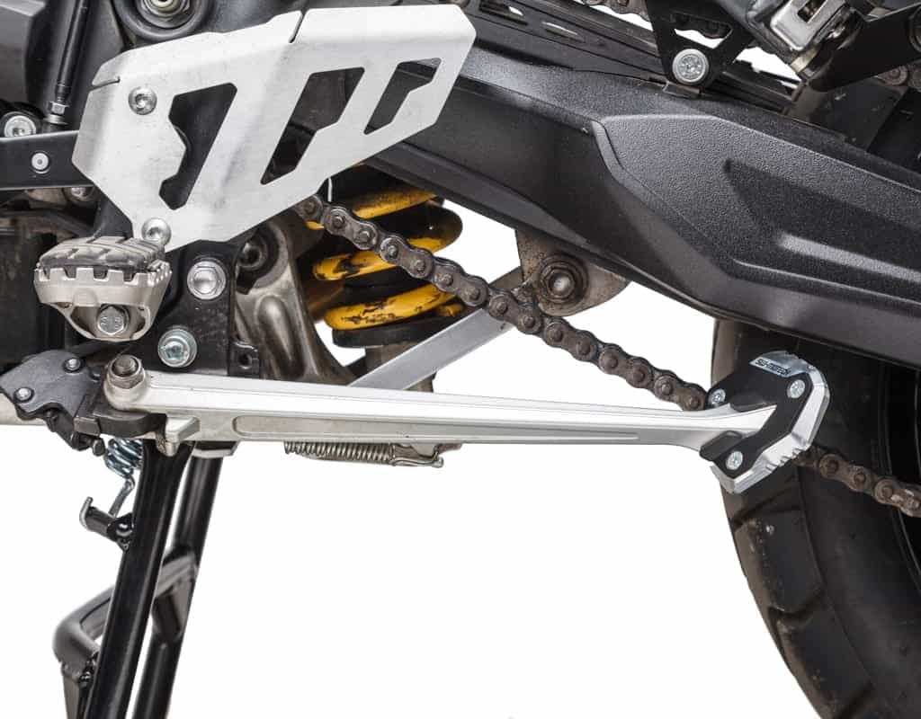 Side stand Foot; the attractive side stand extension is made of High Strength aluminum alloy and CNC milled. Upper mounting Sheet is black powder-coated. ; included:; side stand Foot; mounting material; mounting instructions attention! SW Motech Side Stand Extension for Triumph Speed/Scrambler 400 SW-Motech black/silver extension for side stand foot Yamaha Ténéré 700... Extension For Side Stand Foot SW-MOTECH Black/Silver. Triumph ; side stand Foot is not compatible with OEM triumph centerstand., High quality