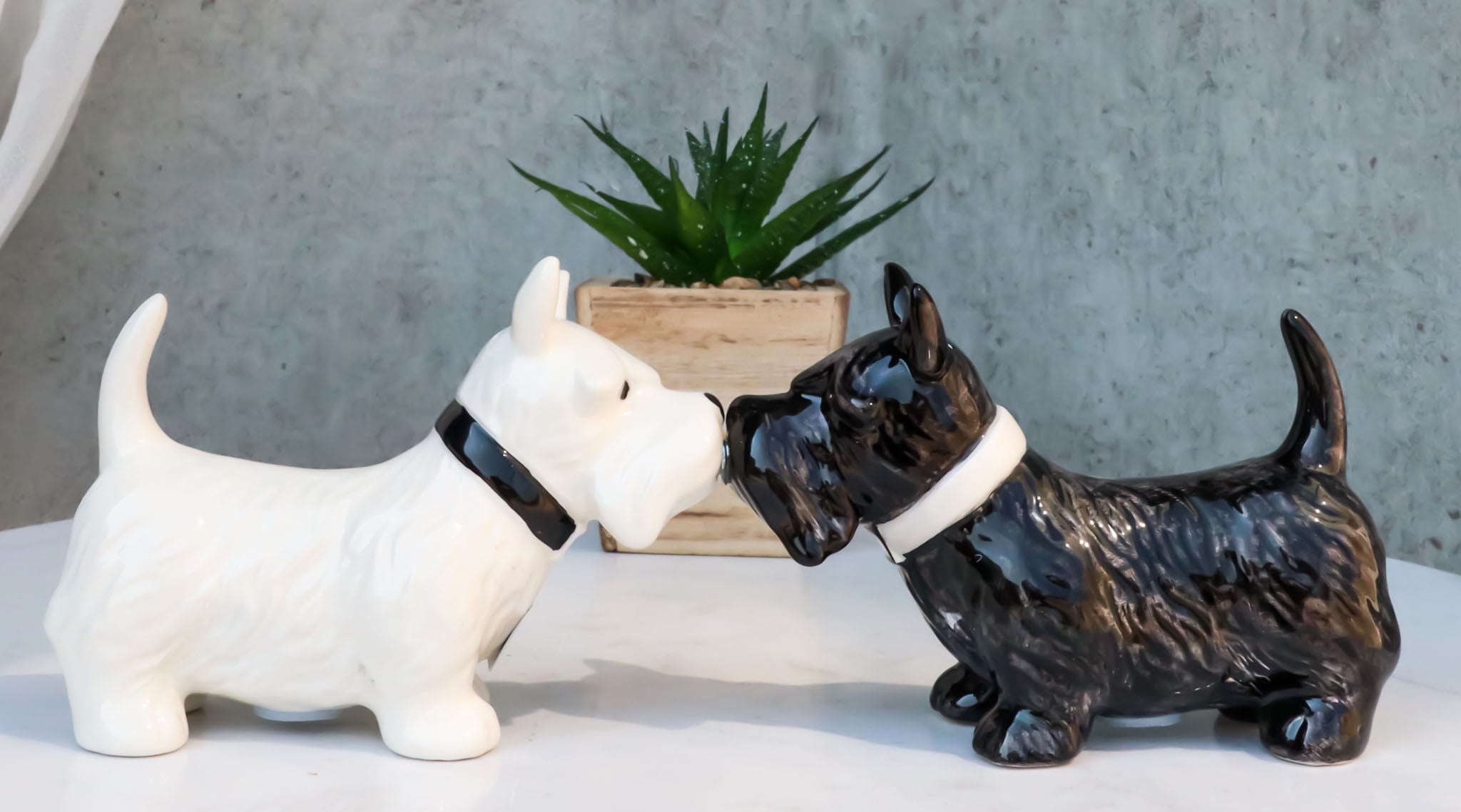 Ne convient pas aux enfants de moins de 12., Produit 100% officiel. Salière et poivrière. Kissing Scottish Terrier Scottie Dogs Salt & Pepper Shaker En céramique de qualité alimentaire Environ 7,6 cm de hauteur Fabriqué en céramique – haute qualité.