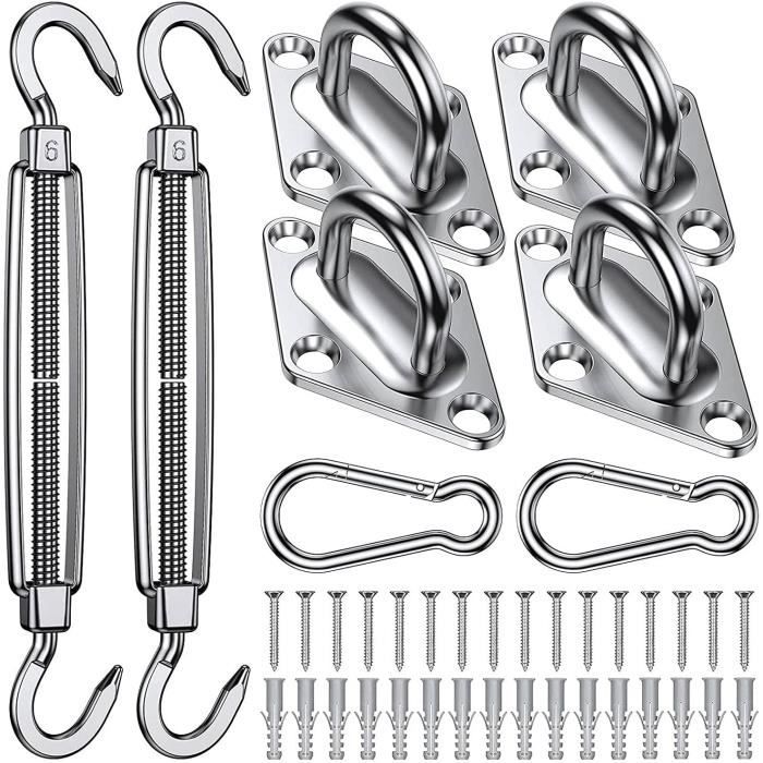 44 pcs Kit de Fixation pour Voile D'ombrage, Inoxydable Kit de Montage Fixations d'ombrage de Boerni M6 Kit de quincaillerie robuste pour installation de voile d'ombrage rectangulaire et carrée Boerni M6 Kit de quincaillerie pour voile d'ombrage robuste - Tendeur réglable pour créer une tension, ce qui fonctionne parfaitement pour serrer ou desserrer la voile d'ombrage. Matériau : Acier inoxydable 304 Contenu : 4 tendeurs, 4 coussins, 4 crochets à ressort, 16 vis et 16 extensions en plastique. Fixation Pour Voile D'ombrage Kit De Fixation Pour Voile D'Ombrage M6 Kit De Fixation Voile D'Ombrage 304 Inoxydable Voile D Système De Fixation Pour Voile Le tendeur peut être ajusté de 15 à 22 cm, vous permettant de serrer ou desserrer facilement le pare-soleil. ✔ Grande capacité de charge – Le kit de matériel de voile d'ombrage peut résister à la tempête et à la pluie, empêchant la voile solaire d'être emportée par le vent rapide ou par les mauvaises conditions météorologiques. ✔ Tendeur réglable – Le tendeur peut être ajusté de 15 à 22 cm, ce qui vous permet de serrer ou desserrer facilement le pare-soleil. Matériau en acier inoxydable 304, anti-rouille, anti-corrosion, résistance aux hautes températures. De petites erreurs de mesure sont possibles. Kit De Fixation De Voile D'Ombrage M6 Très Résistant, Kit De Fixation Pour Auvent En Acier... Obtenez la toile agréable et enseignée sans l'affaissement redouté.