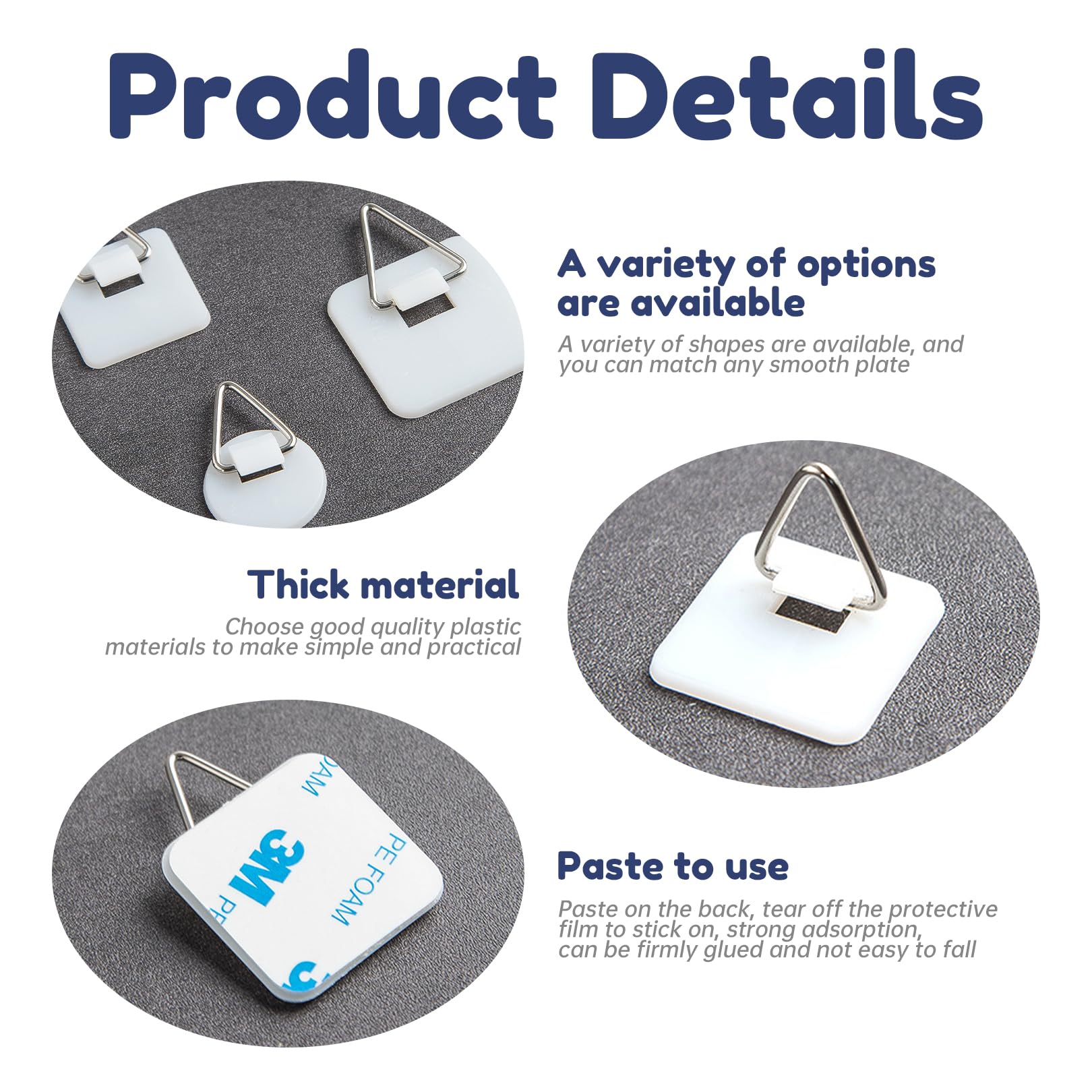 Les crochets adhésifs sont faciles à installer en retirant simplement le film de protection et en poussant les crochets à l'endroit souhaité sur le mur. Matériau : plastique (PS). Le paquet contient : 12 pièces avec des crochets adhésifs. 4 pièces de chaque : rond, petit carré et grand carré. Porte-plaques mural Dimensions : crochets adhésifs pour cadres photo, adaptés aux images qui doivent être fixées sur des surfaces lisses Utilisation : idéal pour le montage de photos, d'œuvres d'art et d'objets de décoration sans perçage Caractéristiques du produit : Les crochets de suspension sont parfaits pour fixer des photos et des objets de décoration sur les murs en toute sécurité. Ces crochets de suspension pratiques sont polyvalents et conviennent à différents types de tableaux et de cadres. 5️⃣ Qualité Supérieure & Réutilisable:Fabriqués en plastique résistant à l’humidité et aux chocs, ces crochets peuvent être repositionnés si nécessaire. L'adhésif puissant permet une adhérence ferme sur les surfaces lisses, de sorte que les images restent fixées de manière sûre et stable. Attache Cadre Sans Percer 12 Crochets Adhésifs Pour Cadres - Fixation Murale Sans Percer, Transparent Ni Clou Ni Vis 2️⃣ Adhérence Puissante & Durable:Avec une colle haute performance, ils tiennent fermement même les cadres lourds sur surfaces lisses (carrelage, verre, bois). 3️⃣ 3 Formes Invisibles & Universelles:Inclus : petits/grands crochets carrés et ronds pour s’adapter à tous types de cadres et décorations (photos, tableaux, miroirs). Les crochets adhésifs solides garantissent que vos photos restent solidement et stables sur le mur. Accroche Tableau Sans Percer 12 Pièces Crochet Adhésif Mural Invisible, Accroche Tableau Accroche Murale Sans Trou 1️⃣ Installation Facile sans Perçage:Ces crochets adhésifs s'installent en quelques secondes, sans outils ni trous dans le mur. Parfait pour les locations et... 1️⃣ Installation Facile sans Perçage:Ces crochets adhésifs s’installent en quelques secondes, sans outils ni trous dans le mur. Ils offrent une solution propre et facile pour accrocher des photos sans endommager le mur ni laisser de trous.