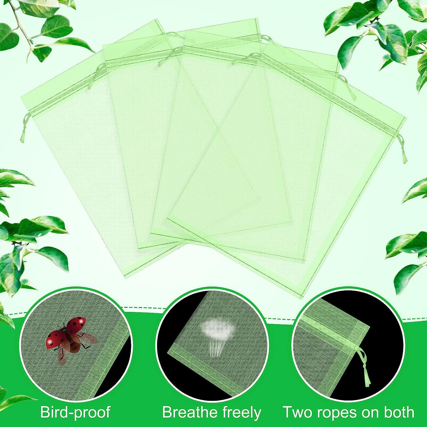 Et vous pouvez les utiliser pour garder vos fruits lors de la récolte. Vous pouvez envoyer la housse en maille de fruits aux personnes qui en ont besoin, telles que les membres de votre famille, les amis, les voisins, les parents, les collègues. Si vous ne pouvez pas manquer de courant, vous pouvez également les utiliser comme sacs de récolte pour stocker des graines de fruits ou de plantes, ou vous pouvez les partager avec vos amis et votre famille Filets Fruits Yardwe Organza - Lot De 50 Avec Cordon, Protection Verger Filets à Fruits Caractéristiques : Avec notre sac en maille de fruits, vous n'avez pas besoin de vous soucier que les oiseaux et autres animaux mangent vos fruits et légumes. Dimensions : environ 20 x 30 cm. Sac Protection Fruits 100 Pièces, Sachet Protection Raisin 20x 30cm... La couleur peut varier légèrement en raison des différents affichages de l'écran. Les mesures étant prises à la main, les tailles indiquées peuvent varier légèrement. Caractéristiques : Matériau : organdia., Couleur : blanc. Cordon de serrage intelligent : la housse en filet à fruits est conçue avec un cordon de serrage, ce qui peut non seulement mieux préserver vos plantes, mais également garantir que le sac peut être fermement fixé aux plantes ; en même temps, il permet à la lumière et à l'air de pénétrer sans affecter l'absorption de la lumière du soleil par les fruits Ces accessoires pratiques et économiques permettent de préserver la qualité de vos récoltes en les préservant des nuisibles et des aléas climatiques. Faciles à installer et à retirer, ils sont disponibles dans différentes tailles pour s’adapter à tous les types de fruits Sachet Protection Raisin Lot De 60 Sacs De Protection Réutilisables Avec Cordon De Serrage Pour Proteger Les Fruits Les Plantes Les Fleurs Vert 20 X 30 Cm17 X 23 Cm Sachet Protection Fruits Ils vous seront reconnaissants pour votre gentillesse, et vos relations seront promouues.