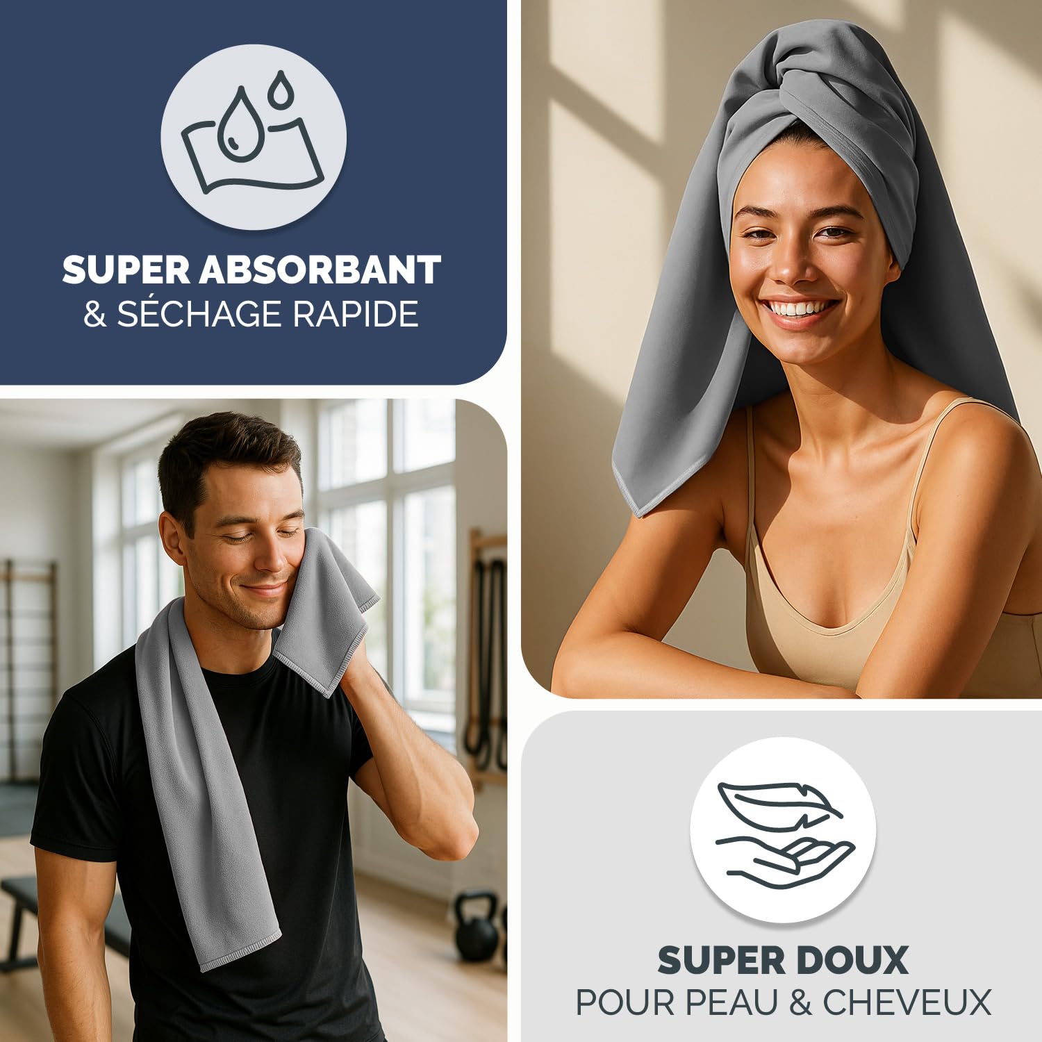 Description du produit De nombreuses tailles et couleurs au choix. Léger comme une plume Total Wash Serviette Microfibre Highlander - Ultra Absorbante, Sèche Vite, Parfaite Pour Rando, Camping, Voyage Mont Michel Fiche produit ; Largeur. 60 cm ; Nombre d'unités. 1 ; Échantillon. Uni ; Composition de la matière. 90% polyester, 10% polyamide ; Couleur. Gris ➤ Matériau de haute qualité avec 260 g/m² , Séchage rapide Serviette De Sport FIT&FUN Serviette En Microfibre 60 X 120 Cm Gris Anthracite Serviette Microfibre Haute absorption d'eau., Facile à nettoyer. Sac de transport pratique Absorption d'eau extrêmement élevée La serviette en microfibre est plus légère que les serviettes ordinaires. La microfibre de qualité supérieure absorbe bien l'humidité, sèche rapidement et est...