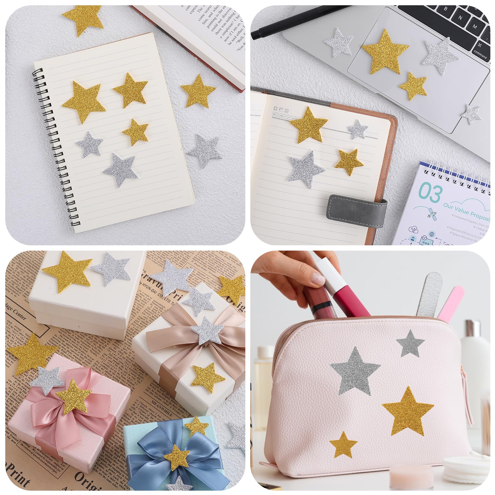 200 pièces dorées et argentées en 4 tailles aléatoires., Matériau : mousse., Couleur : doré, argenté., Emballage : sac OPP. Sachet de 200 étoiles en mousse adhésive pailletée - Tailles Variété de tailles : disponibles en quatre tailles polyvalentes : 2,5 cm, 3,6 cm, 4,6 cm et 5,6 cm. Nos autocollants en forme d'étoile répondent à divers... Design unique : les autocollants en mousse à paillettes en forme d'étoile sont visuellement attrayants et charmants, avec des couleurs vives. Les autocollants en forme d'étoile de différentes couleurs et tailles sont riches et ne tombent pas facilement. Un lot de grandes quantités peut donner libre cours à votre créativité illimitée pour répondre parfaitement à différents besoins dans différentes situations. L'adhésif sur le dos garantit qu'ils sont robustes et durables, nous donnant la tranquillité d'esprit. Nos autocollants ont une texture moelleuse et un effet 3D. Matériaux de haute qualité : ces autocollants en mousse en forme d'étoile sont fabriqués en mousse, doux, léger et respectueux de l'environnement. Facile à utiliser : ces autocollants soignés peuvent être attachés à tout, et les autocollants étoiles pailletées sont faciles à décoller et à coller fermement, simplifiant le processus de collage sans colle ni autres outils. Taille : vous recevrez 200 autocollants en forme d'étoile dorée et argentée, avec des tailles d'environ 5,5 cm, 4,5 cm, 3,5 et 2,5 cm, qui peuvent répondre à vos besoins d'utilisation quotidienne. Pour répondre à votre décoration sous différents Sticker Etoile Lot De 200 étoiles Autocollantes En Mousse à Paillettes Autocollant Etoile Dorée Libérez leur imagination et créez quelque chose de vraiment spécial, il peut également être utilisé pour décorer des cartes faites maison, des albums ou tout endroit souhaité, ajoutant une touche d'éclat à n'importe quel environnement.