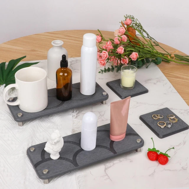 Sèche instantanément : la terre de diatomée peut contenir jusqu'à 150 % de son poids en humidité et s'évapore en quelques secondes. MULTIFONCTIONNEL : Ce plateau en pierre absorbante est idéal pour ranger savon, brosses, lotions, produits de toilette et porte-brosses à dents. Ce plateau en diatomite offre un espace propre et organisé dans votre cuisine, salle de bain ou chambre Haute qualité : le panier d'évier Aoipend est fabriqué en terre de diatomée respectueuse de l'environnement et durable, et les pieds du panier d'évier sont fabriqués en acier inoxydable avec un fond en caoutchouc pour résister aux conditions d'humidité les plus difficiles et réduire les taches d'eau dure sur les comptoirs. Plateau Salle De Bain Organiseur De Salle De Bain à Séchage Instantané, Plateau En Pierre Plateau Bain Respectueux de l'environnement : fabriqué à partir de minéraux 100 % naturels biologiques, une combinaison durable de terre de diatomée et de papier recyclé, organisateur d'évier ultra absorbant Contrairement aux accessoires d'évier traditionnels qui restent humides et génèrent des bactéries, ce plateau d'évier en pierre à séchage rapide gardera votre comptoir de salle de bain propre et sec. Matériau durable et recyclable le plateau de salle de bain à séchage instantané pour comptoir est fabriqué à partir de terre de... BAC DE VIDANGE Plastique Plateau Séchage Vaisselle Séchoir Pour Évier Design élégant et pratique : utilisez-le comme porte-éponge, organisateur d'évier de cuisine, ou dans la salle de bain pour vos lotions et articles de toilette Gardez vos comptoirs de salle de bain et de cuisine secs et exempts d'eau