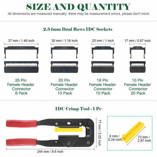 Contenu : 1 x emporte-pièce. Connecteur Jst Keadic Lot De 50 Connecteurs De Câble IDC à Deux Rangées De 2,54 Mm Avec Connecteur Femelle 10, 16, 20, 26 Broches Et Câble Plat Arc-en-ciel Et Outil à Sertir Connecteur Dupont ④ FC-26P -- 38 x 6 x 13 mm. Équipé de 4 câbles plats arc-en-ciel (10 broches/16 broches/20). Pin/26 broche) et 1 pince à sertir IDC. Très pratique pour sertir une variété de câbles plats... ③ FC-20P : 30 x 6 x 13 mm. Keadic Lot de 49 connecteurs de câble IDC FC-10 16 20 26 broches 2 x 8 femelles avec outil à sertir IDC, pour câble plat et connecteurs IDC Caractéristiques : ★ Matériau : ▸Connecteurs IDC --- Plastique Pince à sertir --- alliage d'acier, caoutchouc et plastique. Longueur x largeur x hauteur : ① FC-10P -- 18 x 6 x 13 mm ② FC-16P : 25 x 6 x 13 mm. Taille de la broche femelle : ▸Le pas : 2,54 mm. 10 connecteurs femelles FC-16P. 💗 Outil de sertissage IDC : cette pince à sertir est fabriquée en alliage d'acier de haute qualité, avec une dureté élevée et une forte ténacité, résistante à la corrosion et à la rouille Il est conçu avec une poignée en caoutchouc pour vous offrir un toucher confortable. Taille de l'outil à sertir IDC : Longueur : 240 mm., Largeur : 78 mm. Kit de connecteurs IDC : ce kit de connecteurs IDC comprend 4 types de connecteurs IDC, leur nombre de broches et leur quantité sont respectivement : FC-10P × 20pcs, FC-16P × 10pcs, FC-20P × 10pcs, FC-26P × 8pcs 💗Taille standard : le pas de la broche femelle est de 2,54 mm. Convient pour toutes les prises IDC mâles ou femelles des séries 26, 28 et 29 Trouvez la meilleure qualité et le connecteur SCSI HD 100 femelle à angle droit durable de notre usine ici. 20 connecteurs femelles FC-10P. 1 boîte en plastique., 💗 Pourquoi nous choisir ? 1., Gamme complète : 4 types de prises de câble IDC sont inclus, répondant à vos différents besoins., 2., Haute qualité : la pince à sertir est bien faite, robuste et durable, vous offrant une plus longue durée de vie., 3., Service de satisfaction à 100 % --- Nous vous fournissons des produits 100 % neufs, un remboursement complet et un service de réponse de 12 heures Conseils : veuillez garder ces petits articles hors de portée des enfants de moins de 5 ans pour éviter les accidents. Et la longueur totale de la pince à sertir est de 240 mm. JST – câble connecteur mâle 26awg XH 2.54, 2/3/4/5... – Grandado