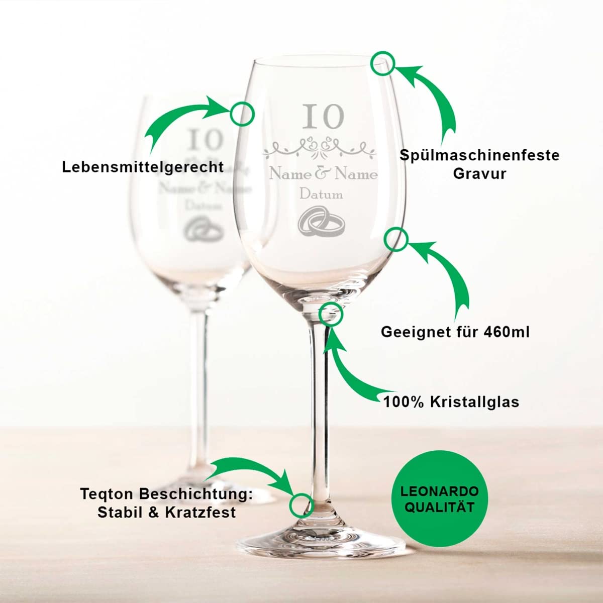 Grâce à la formule innovante TEQTON high-tech, elle est particulièrement robuste, résistante aux chocs et passe bien sûr au lave-vaisselle Faites de votre anniversaire, des fiançailles, un mariage ou la Saint-Valentin quelque chose de très spécial avec une flûte à champagne conçue avec soin. Finition : Grâce à la formule innovante TEQTON high-tech, particulièrement robuste, résistante aux chocs et bien sûr Passe au lave-vaisselle – Absolument adapté à un usage quotidien, résistant, durable et facile d'entretien. Convient pour un usage quotidien et passe au lave-vaisselle. Gravure laser précise de haute qualité. 💎 100 % Leonardo : verre de qualité avec gravure laser de qualité supérieure. Motifs chaleureux pour elle et lui. Verre à champagne personnalisé avec un texte - KDO MAGIC Grâce à un design sophistiqué défini, les verres sont parfaitement équilibrés et ont une bonne stabilité. Idéal pour le vin mousseux de toutes sortes. Verre A Champagne Personnalisé Leonardo Verre à Champagne – Design Amore – Personnalisé Avec Verres Champagne Design Nos bocaux sont livrés en toute sécurité dans un emballage cadeau élégant et robuste. Service : commandez dès aujourd'hui et laissez-vous convaincre par la qualité supérieure et l'expédition rapide. GRAVURZEILE – Flûtes à champagne élégantes avec gravure – Verre de qualité supérieure gravé au laser. Caractéristiques des flûtes à champagne Leonardo gravées Verres de qualité de la maison traditionnelle Leonardo. Dimensions : les dimensions du calice sont conformes à la norme avec (l) 70 x (H) 136 mm, bord en verre (B) 47 mm. Nos flûtes à champagne gravées offrent des designs et des motifs pour différentes occasions et convainquent par leur qualité et leur soin. Surprenez votre partenaire et votre famille avec les designs personnalisés et offrez un cadeau inoubliable Bord en verre (B) 47 mm., Hauteur totale : 245 mm., Capacité maximale : 200 ml. Pour garantir cela, chaque verre est testé avant l'expédition pour les erreurs de gravure et est ensuite emballé en toute sécurité Si vous êtes à la recherche d'un cadeau imaginatif pour les buveurs de champagne, vous devriez jeter un œil à nos flûtes à champagne gravées. Avec un verre transparent et un design élégant, ces verres sont le cadeau parfait pour toutes les occasions. Cadeau parfait pour un anniversaire, la fête des mères, la... Verres à Champagne de Mariage avec Coeurs à l'Intérieur, Flûte de Grillage Dorée, Verre à Vin, Gobelet, ixdes Amoureux, Cadeaux de la Journée de Léon La marque est synonyme de clarté et de finition fine. Avec un verre transparent et un design élégant, ces verres sont le cadeau parfait pour toutes les occasions.