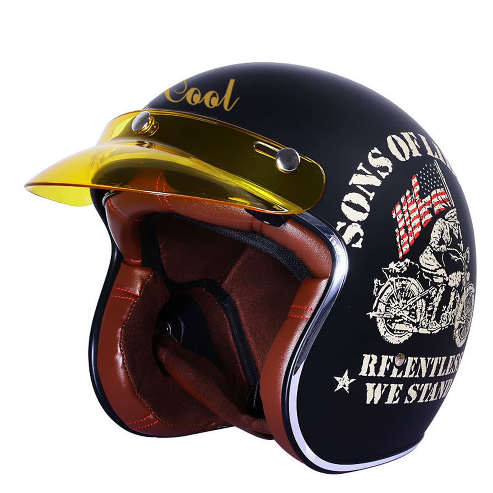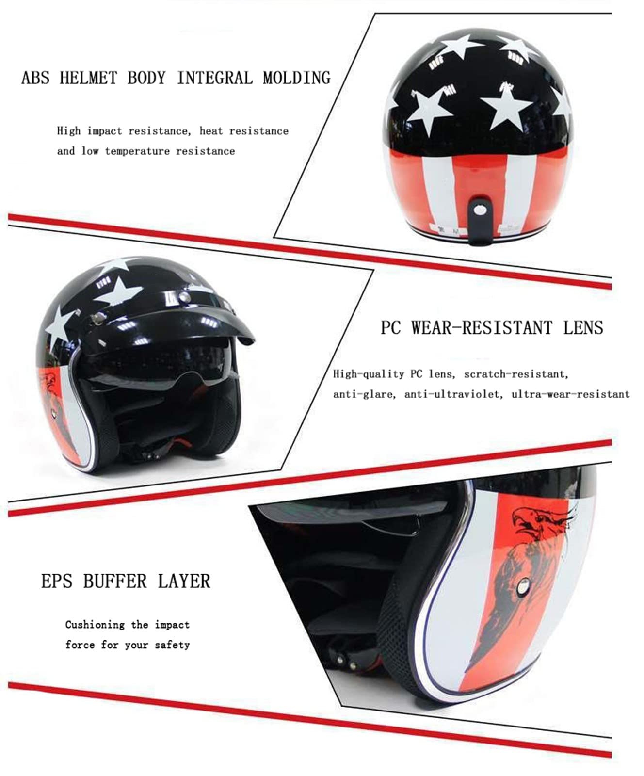 Casque de moto professionnel : ce casque est conforme aux normes de sécurité DOT/ECE R2205, ce qui signifie qu'il est approuvé pour une utilisation sur toutes les routes européennes et américaines. C'est un excellent outil de sécurité routière qui peut être utilisé en toute confiance Liste de produits: Casque * 1 Gants * 1 Masque * 1 Parfait pour les fêtes de moto, les décorations, les clichés de rue, pour moto, cruiser, hélicoptère, moto, véhicule à quatre roues, vélo de sport, moto parfait pour les cadeaux du Nouvel An, les cadeaux d'anniversaire, les cadeaux de Noël. HAUTE QUALITÉ: Le casque de moto pour cyclomoteur à face ouverte est composé d'une coque ABS avancée, d'EPS haute densité (pour un ajustement confortable et une bonne absorption) et d'une doublure respirante en maille super douce. Vintage Open Face Motorcycle Helmet Retro 3/4 Helmet Jet Pilot Helmet DOT/ECE Approved Adult Motorbike Moped Cruiser Helmets Men Women Scooter Helmet with Drop Down Sun Visor A,XL Moped Helmet Summer Motorcycle Helmet Men 3/4 Open Face Motorcycle Helmet With Lens Electric Scooter Jet Half Helmet Casque Moto Femme Taille Motorcycle Helmets For Men La base de la visière en métal peut être serrée ou desserrée à la main sans avoir besoin d'outils supplémentaires. POLYVALENT: Ce casque a un style rétro, idéal pour les adultes qui conduisent des motos, des scooters, des croiseurs, des choppers, des scooters et des vélos de rue, adapté aux déplacements quotidiens, aux voyages ou aux croisières en ville. CONCEPTION À DOUBLE VISIÈRE : La visière extérieure est transparente et résistante aux rayures. La doublure est amovible et lavable. COMMODITÉ : La boucle à dégagement rapide est solide et durable et peut être libérée avec une main gantée. Demi-casque de moto 3/4, casque de moto rétro, approuvé ECE/DOT, casque jet rétro pour homme et femme, casque ouvert avec visière, casque de moto A1, taille L = 59-60 cm : : AutoÀ propos de cet article Matériau : corps du casque : matériau ABS de haute qualité, résistant à l'usure, aux chocs et incassable, protégeant la tête et réduisant les blessures. Doublure CERTIFICATION : Le casque de moto ouvert répond aux exigences DOT/ECE 22-05 et est conforme aux normes FMVSS 218 pour garantir la plus haute qualité et la meilleure expérience tout en maintenant le poids du casque.