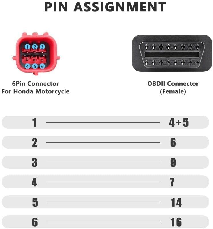 6 à 16 Broches OBD2 Connecteurs Outils de Diagnostique Câbles D... Ce câble de moto OBD 6 broches fonctionne avec divers programmes/applications et avec les lecteurs OBD2 standard, convertit le connecteur OBD2 standard 16 broches en connecteur 6 broches requis., 4., Ce câble de diagnostic de moto à 6 broches est fabriqué à partir de matériaux de haute qualité qui garantissent durabilité et longévité. Vous pouvez lire les données du moteur en direct – tr/min, vitesse, températures, données du capteur O2, tensions, valeurs d'émission et bien plus encore. Adaptateur moto à 6 broches qui ne vieillit pas facilement et résiste à l'abrasion. Veuillez noter que cet article est uniquement un câble de 6 broches, le scanner de diagnostic n'est pas inclus. (Remarque : logiciel non inclus) , 3., Cet adaptateur OBD2 à 6 broches pour moto est facile à utiliser, même pour ceux qui ne sont pas familiers avec les diagnostics de moto. Avant d'acheter, veuillez confirmer que les broches sont correctes, merci! 1., Ce câble OBD 6 broches convient aux motos Suzuki avec connecteur de diagnostic à 6 broches. Il suffit de les brancher et de suivre les instructions. Tappo Obd Câble Diagnostic OBD2 6 Broches Moto – Compatible Yamaha, Honda, Suzuki Valise Obd Connecteur 6 broches Plug and Play : ce câble OBD 6 broches pour moto fonctionne avec divers programmes/applications et avec les lecteurs OBD2 standard, convertit le connecteur OBD2 standard 16 broches en connecteur Euro5 à 6 broches requis. Adaptateur Obd Pour Moto Câbles Adaptateurs 6 Broches Vers OBDII 16 Broches Compatible Avec Suzuki Diagnostics De Moto OBD2 Cordon D'instruments De Diagnostic De Défaut 33cm Adaptateur Prise Obd Moto Ce câble mesure 30 mm et 7,0 mm de diamètre, fabriqué à partir de cuivre pur avec câblage 26AWG, les connecteurs à 6 broches ont été améliorés pour la protection et la fixation, assure une plus grande durabilité et une plus longue durée de vie, le matériau ABS de haute qualité rend ce câble obd durable à utiliser 5000+ fois.5.Ce que vous obtiendrez : 1 câble de diagnostic OBD 6 broches vers 16 broches pour moto. La ligne de diagnostic est solide et ne vieillit pas facilement et résiste à l'usure pour garantir l'intensité et la durabilité maximales d'une utilisation continue. L'adaptateur Spécial Suzuki que nous proposons est spécialement étudié pour pouvoir se brancher sur les motos Suzuki ayant un connecteur 6 Broches Vous pouvez vous connecter à des programmes, puis vous pouvez lire/supprimer la mémoire de défaut, lecture des données du moteur en direct telles que la vitesse, le tr/min, la température, les données du capteur O2, les émissions, les tensions, etc. Câble connecteur à 4,6 broches Moto Bonne qualité : Le câble d'outil de diagnostic obd2 obdii à 6 broches vers can a été conçu pour être plus épais. 6 broches pour Suzuki prend en charge de nombreux outils de diagnostic OBD et lecteurs de code OBDII tels que ELM327 et autres scanners de diagnostic.