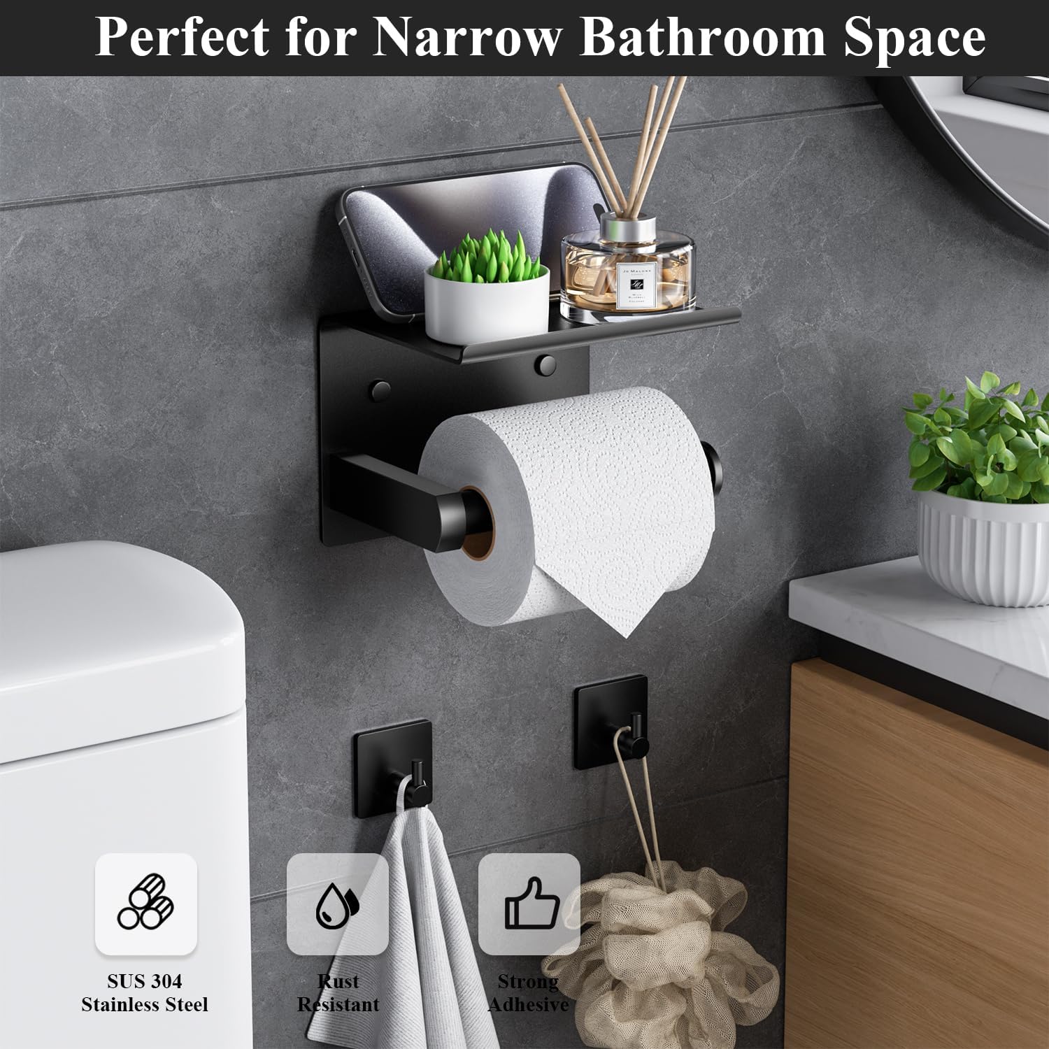 Il est résistant à la corrosion et à la rouille et a une durée de vie plus longue. Caractéristiques : * Porte-papier toilette LIYUABU No Punch + 3 crochets. Convient à la plupart des rouleaux : la longueur maximale du rouleau de papier est de 12,6 cm. Il est adapté à la plupart des rouleaux de papier toilette sur le... Le design adhésif sans perforation a une forte adhérence et convient à un usage quotidien. Spécifications: Couleur : noir. Nos porte-papier toilette et crochets sans perçage ont une forte adhérence, sont imperméables et ne tombent pas facilement Installation facile : décollez simplement le film adhésif, collez-le au mur et appuyez pendant quelques secondes. Porte-Papier Hygiénique Autocollant Noir Porte-Papier Tissu 3M Support Cintre Salle De Bain Sus 304 Acier Inoxydable 10 Ans De Garantie Aucun Percage Requis Adhesif Fort Et Etanche Installation facile : pas besoin de percer des trous pour une installation facile. Décollez simplement le film adhésif, collez-le au mur et appuyez pendant quelques secondes. Il a une dureté élevée et ne sera pas facilement endommagé par une utilisation quotidienne. Porte-papier Toilette Sans Perçage - En Acier Inoxydable 304 Auto Adhesif Noir Pour Salle De Bain Et Cuisine 90926138 Matériau : le porte-papier toilette est fabriqué en acier inoxydable SUS304, qui est très durable et antibactérien, empêchant les rayures, la rouille et la moisissure dues à une utilisation quotidienne.Porte-papier toilette sans perçage : Utilisez du ruban adhésif pour fixer le porte-papier toilette au mur. Décollez simplement le film du tampon adhésif, collez-le sur une surface... L'apparence simple est équipée d'un design antidérapant et peut être installé horizontalement ou verticalement, ce qui vous permet d'utiliser efficacement l'espace. Matériau : acier inoxydable.