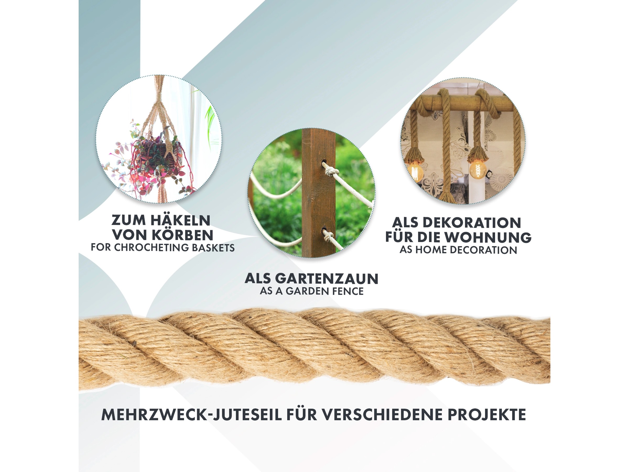 Seile mit einem kleinerem Durchmesser werden in der Land-, Garten- und Forstwirtschaft (z., B. 10 Mm 10 M Juteseil, Hanfseil, Natur Tau Seil Kordel, Juteschnur Bastelschnur Für Garten, DIY Kunsthandwerk, Verpackungen Und Dekoration 339€ (0,34€/Meter Aufgrund ihres ästhetischen Erscheinungsbilds kann ein Juteseil auch zu dekorativen Zwecken verwendet werden. Corde Jute 20mm Juteseil 10 M Länge 30 Mm Stärke - Hanfseil - Juteschnur - Naturfaser Hanfseil 10mm Domaines d'utilisation dans le domaine de la construction, de la sylviculture ou de la voile , Remorquage et ancrage UNUS HOME Naturfasersel Jutesel gedreht Sel (Stärken: 8mm, 10mm... Juteseil, 10 mm dick, Hanfseil für Dekoration, Heimwerken, Gartenarbeit, Kratzbaum (10 Meter Résistant aux déchirures et à l'abrasion von Binden von Ästen) verwendet.