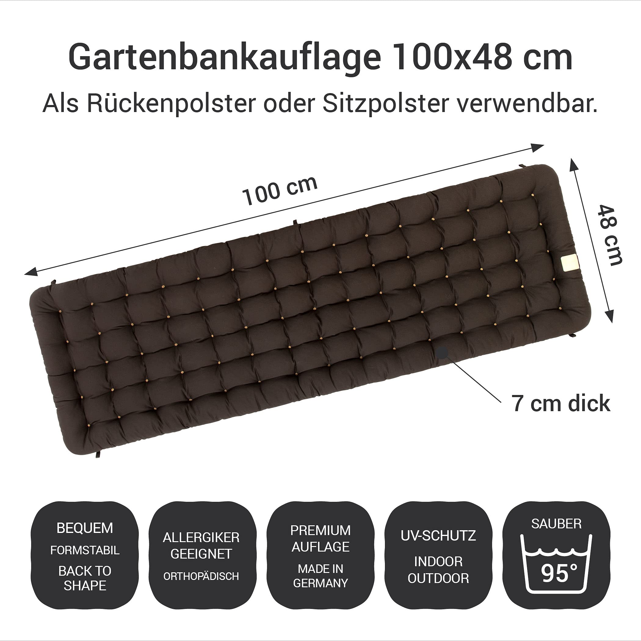 Lors de la découpe à la main, ces erreurs sont exclues. Confort d'assise de qualité supérieure, confortable et orthopédique, rembourrage thermique confortable, convient aux personnes allergiques, technologie Back To Shape pour une adaptation parfaite du coussin au corps En bref : Lavable en machine jusqu'à 95 °C Utilisation pour banc, banc de jardin, salon, etc. Détails du produit : Taille : 1 7 cm - Fixation : ruban/nœud/ruban (longueur env. La découpe se fait à la main. Le rembourrage de qualité supérieure des coussins d'assise en coton doux pour la peau crée une sensation d'assise unique et agréable (recommandé pour les meubles de jardin en bois, acier, aluminium., ., ., ) Coussin de banc de jardin - ZJCHAO - Rouge - 100 x 50 x 3 cm Back-to-Shape / couleurs résistantes / convient aux personnes allergiques / ÖkoTex 100 / fabriqué en Allemagne Avant la découpe, le tissu est repassé à une pression de 3 bar et à plus de 100 °C. HAVE A SEAT Living - Lot De 2 Coussins De Chaise 48 X 46 Cm - Coussins De Chaise En Rotin - Résistant Aux Intempéries, Lavable Jusqu'à 95 °C, Orthopédique - Fabriqué Passe au sèche-linge Contenu de la livraison : 1 coussin de 100 x 48 cm, 7 cm d'épaisseur + 5 bandes de fixation (longueur environ 70 cm) - Universellement compatible avec les bancs de jardin, les bancs d'angle (100 x 50 cm) avec et sans dossier (sans meubles) Coussin moderne de qualité supérieure pour bancs de jardin - Asseyez-vous confortablement et vous sentirez à l'aise. Couleurs résistantes aux UV Même les saletés tenaces du coussin de banc sont propres après un lavage à 95 °C - Le coussin de banc parfait pour un siège propre pour se sentir bien Étant donné que les coutures sont soumises à de fortes contraintes, nous utilisons un processus de couture complexe mais robuste pour assembler les différents composants. Entièrement lavables jusqu'à 95 °C - Les coussins n'ont pas de housse amovible, ce qui rend le rembourrage hygiénique et pur - Passe au sèche-linge - Convient aux personnes allergiques - Fabriqué en Allemagne Les tissus sont découpés et contrôlés à nouveau pour les erreurs. Grâce à notre technologie Back-TO-SHAPE, le coussin de siège reprend toujours sa forme d'origine et garantit que votre coussin de chaise reste tel quel, même après une utilisation fréquente. Coussin pour Banc de Jardin Coussin confortable pour banc de jardin - orthopédique, lavable jusqu'à 95°C, convient pour le sèche-linge. Coussin moderne et de haute qualité pour bancs de jardin - simplement asseyez-vous confortablement et sentez-vous bien... Longueur : environ 100 cm - Largeur : environ 48 cm - Épaisseur des coussins : environ 7 cm (utilisable comme coussin d'assise ou coussin de dossier) Qualité... En effet, lors d'une découpe à la machine, les changements de tissu et les inexactitudes ne sont pas à éviter. (Le coussin n'a pas de housse) Même les saletés tenaces sont propres après un lavage à 95 °C.