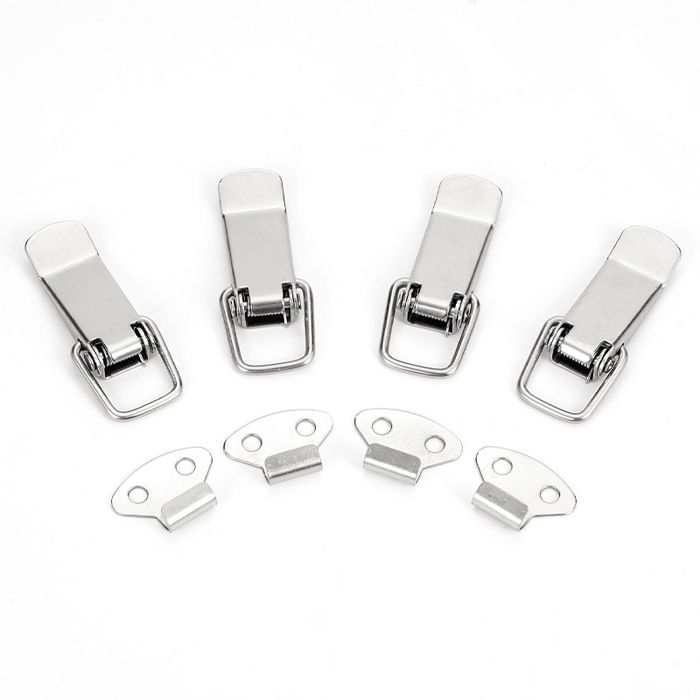Caractéristiques : Matériau : acier inoxydable 201., Couleur : argenté. Facile à utiliser : le design à ressort et l'excellente tension lui permettent de tenir fermement pendant le verrouillage, et un déverrouillage simple, sûr et pratique à utiliser. Les boîtes, bagages, coffres, boîtes à outils, boîtes aux lettres, boîtes aux lettres, tiroirs, coffres, maisons, bureaux, magasins, etc. sont tous adaptés à l'utilisation. Le trou de verrouillage permet d'ajouter un verrou supplémentaire pour une double protection. Loquets à Bascule Fermeture A Levier 2 En Acier Inoxydable - Moraillon Verrou Pour Coffre, Boîte, Armoire - 15x40mm Loquet Acier Inoxydable Loquet à Bascule Extérieur Longueur en option : 45 mm, 55 mm, 65 mm, 75 mm., Processus : estampage. 8 choix : disponible en 4 longueurs (45 mm, 55 mm, 65 mm, 75 mm), et chacun pour 2 styles (avec trou de verrouillage, sans trou de verrouillage). Matériau de qualité supérieure : fabriqués en acier inoxydable 201 de haute qualité, avec un processus d'estampage, ces loquets à bascule sont antirouille, solides, durables et ont une longue durée de vie. Sûr et fiable : équipé d'un mécanisme Stro Spri, les loquets à bascule ese offrent une tenue sûre et fiable, assurant que votre boîte de rangement, armoire ou placard reste bien fermée