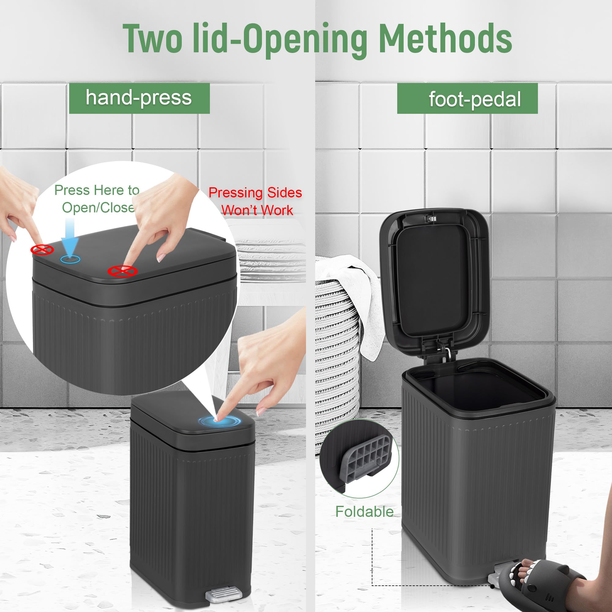 Couvercle à double action : offre deux façons d'ouvrir : appuyez avec votre main ou marchez avec votre pied. Fermeture douce et silencieuse et couvercle ouvert : la poubelle en acier inoxydable est dotée d'une fonction de maintien en position ouverte qui pousse le couvercle à 90° pour qu'il reste ouvert ; le couvercle est équipé d'un amortisseur qui retarde la fermeture, ce qui lui permet de se refermer silencieusement et en toute sécurité à chaque sign fin : la petite poubelle... Couvercle silencieux et à fermeture douce : la fonction d'abaissement automatique assure une fermeture silencieuse et sécurisée, emprisonne les odeurs et garde les déchets cachés. X-MAX FURNITURE Petite Poubelle De Salle De Bain Avec Couvercle à Compact et élégant : le design rétro s'adapte aux petits espaces dans n'importe quelle pièce : salle de bain, cuisine, chambre, toilettes, dortoir, bureau, chambre d'enfant, ferme, salle d'eau, appartement, camping-car ou camping-car, mélange fonction et style Ensemble de 3 Petite Poubelle Salle Bain avec Couvercle Pop-up, 7 L... Poubelle Salle Bain Couvercle Petite Poubelle Couvercle À Il est résistant aux animaux de compagnie et imperméable pour éviter les dégâts et garder les animaux de compagnie hors de la poubelle Design peu encombrant : poubelle fine et compacte avec une pédale pliable qui s'adapte aux espaces restreints.