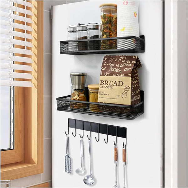 Lot de 4 étagères à épices pour réfrigérateur pour la cuisine Étagère de rangement pour réigérateur pour cuisine T1, côté mur du réigérateur, espace de rangement pour épices Robuste et durable : cette étagère magnétique est fabriquée en matériaux de haute qualité, avec une finition noire mate, robuste et durable, ce qui vous aide à garder votre cuisine organisée. Chaque étagère peut supporter jusqu'à 6 à 12 pots à épices, supportant jusqu'à 4,5 kg étagère Aimantée Supports Frigo Aimantés 4 Pièces épices Lot De 4 étagères Magnétiques Frigo - Support épices Et Condiments Sans Perçage Etagere Refrigerateur Etagere Aimantée Frigo Description de Lot de 4 étagères à épices pour réfrigérateur, organisateurs de rangement polyvalents Amélioration de l'espace de rangement : Pour répondre aux contraintes de l'espace limité dans la cuisine, notre étagère à épices magnétique 6 pièces, soigneusement conçue, augmente non seulement la capacité de stockage, mais...