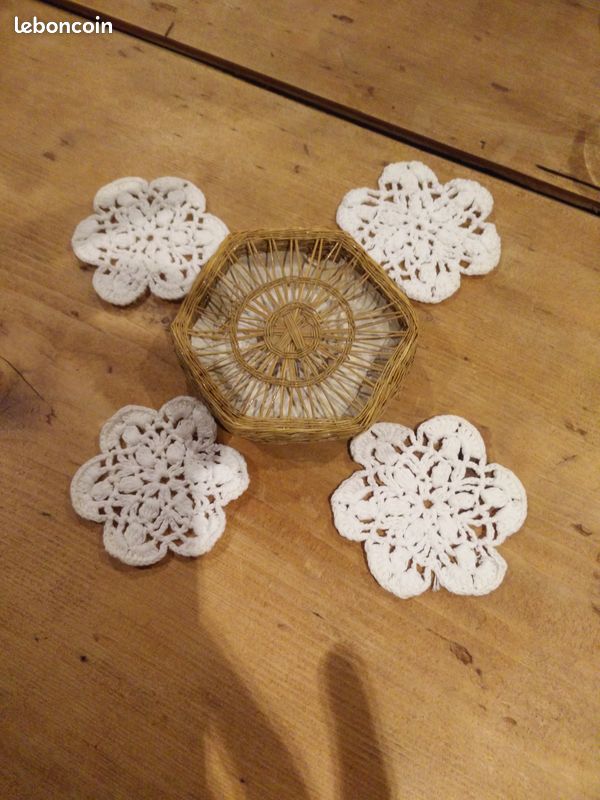 L'ensemble soigneusement emballé est un cadeau parfait pour la fête des mères 2025, une fête prénuptiale ou un cadeau d'anniversaire pour elle. Ensemble de dessous de verre en crochet fait à la main avec mini panier – Dessous de verre floral bohème pour table basse, cadeau de mariage, pendaison de... 4 sous- verre vintage crochet avec étui osier - Arts de la table Accessoires d'intérieur multifonctions : les dessous de verre épais au crochet protègent les tables en bois des anneaux de chaleur/d'eau ; les mini paniers décoratifs maintiennent parfaitement les anneaux près de l'évier de la salle de bain, les clés dans l'entrée ou les petites plantes grasses. Panier Mariage Fnaobai Ensemble De Dessous De Verre En Crochet Fait à La Panier Cadeau Barbarella fait du crochet: dessous de verre Ensemble cadeau complet fait main : le lot de dessous de verre en crochet fait main comprend un grand dessous de verre de 17 cm (convient à la plupart des tasses/jardinières) et un mini panier de 7,9 cm – Parfait comme organisateur de bijoux ou pièce décorative Maîtrise du crochet fait à la main : chaque ensemble de dessous de verre au crochet de qualité supérieure est fabriqué à la main à partir de fil de coton doux avec une broderie florale délicate qui crée un charme vintage instagrammable pour votre table basse.